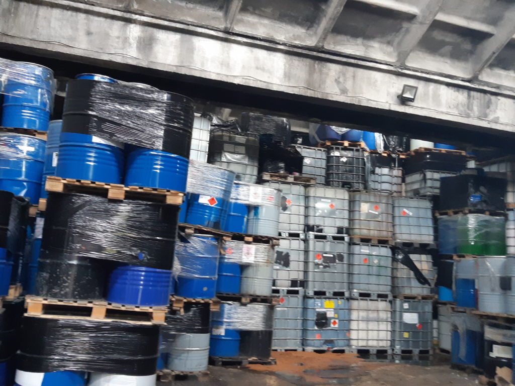 Pojemniki z odpadami magazynowane są w kilku warstwach o łącznej wysokości około 4-5 m, co może powodować ich uszkodzenia i wyciek niebezpiecznych substancji do środowiska, zwłaszcza, że większość pojemników z niebezpiecznymi substancjami nosi ślady zużycia, opakowania są pogniecione lub pęknięte, a ustawianie ich piętrowo powoduje dalszą ich degradację i uszkodzenia. Nadwyrężenie ich konstrukcji może doprowadzić do wycieków substancji w nich zgromadzonych.
