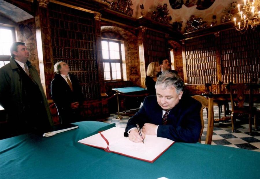 Pierwszy pobyt Lecha Kaczyńskiego w Częstochowie i na Jasnej Górze (1999 r.), po zwolnieniu ze stanowiska ministra sprawiedliwości w rządzie premiera Jerzego Buzka. Pamiątkowy wpis Lecha Kaczyńskiego do księgi w Bibliotece Jasnogórskiej.