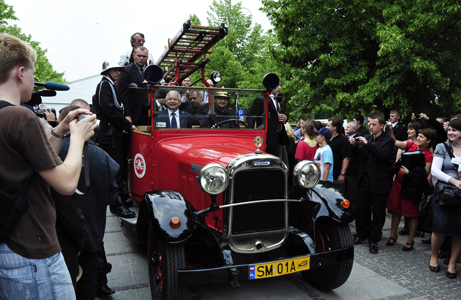 Pamiętny przejazd Prezydenta Lecha Kaczyńskiego wozem strażackim wzdłuż Alei Najświętszej Maryi Panny podczas obchodów 100-lecia Krajowej Wystawy Rolniczej w Częstochowie.