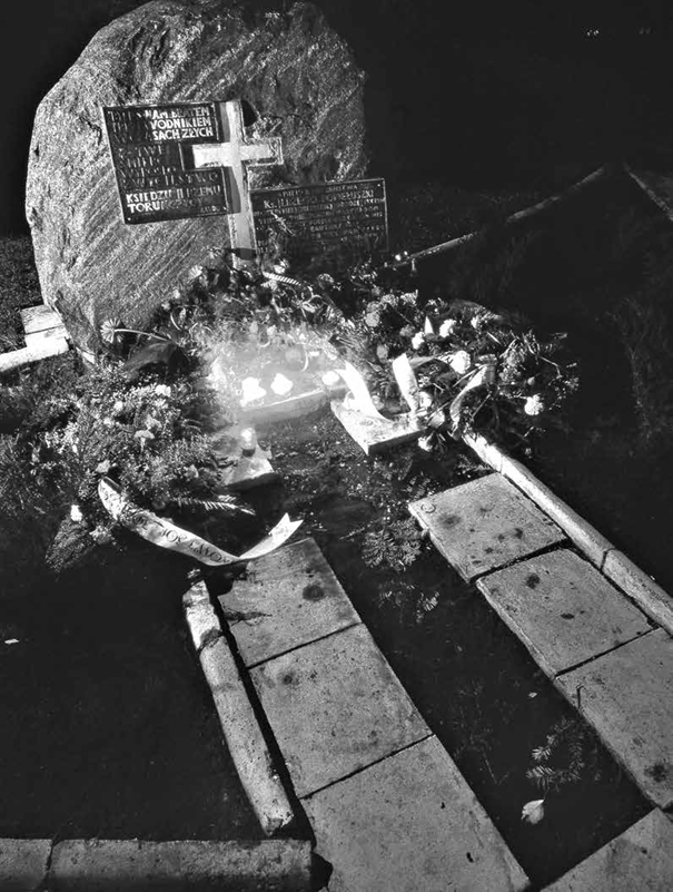 Gdy wkładano trumnę do grobu, zaświeciło jesienne słońce. Rodzice – Marianna i Władysław stali nad otwartym grobem w blasku tego promiennego, złocistego światła. Matka, cicho szlochając, ocierała dłońmi cieknące po policzkach łzy. Gdy trumna z ciałem ks. Jerzego spoczęła w grobowym dole, zbolała kobieta upadła na kolana. Jakże przypominała Matkę Bolesną klęczącą u stóp ukrzyżowanego Syna… Potem na kolana padł także ojciec. Tłum żałobników zaintonował „Boże, coś Polskę” z refrenem „Ojczyznę wolną racz nam wrócić Panie”.