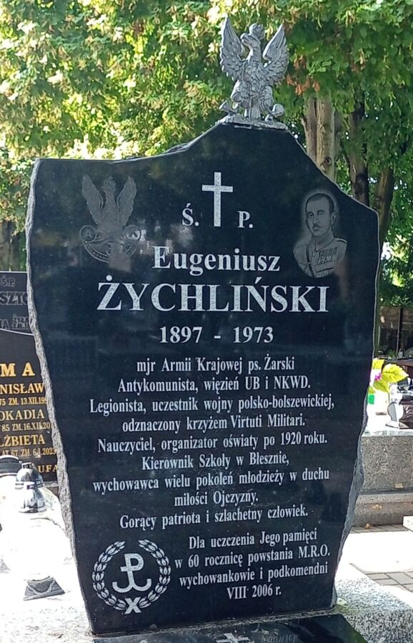 Fot. 1 Płyta pamiątkowa na grobie majora AK Eugeniusza Żychlińskiego na cmentarzu Rakowskim