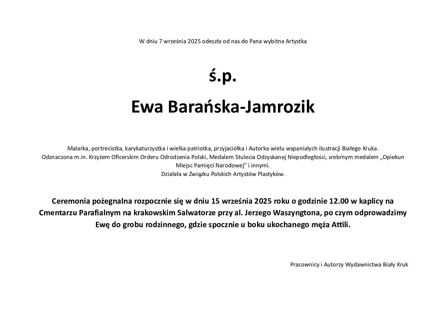 Już w niedzielę, 14 września 2025 r., o godz. 16.30 wydawnictwo Biały Kruk we współpracy z Sanktuarium Jana Pawła II w Krakowie (budynek Fides), ul. Totus Tuus 32 (Białe Morza), ma zaszczyt zaprosić na wyjątkowe spotkania autorskie, zorganizowane wokół premiery najnowszych książek wydawnictwa oraz dla uczczenia 70. rocznicy urodzin papieża Leona XIV i 78. rocznicy urodzin bł. ks. Jerzego Popiełuszki.