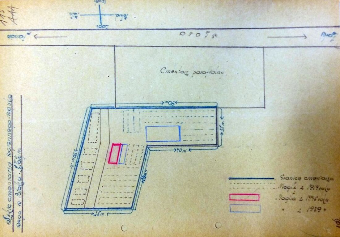 - Plan cmentarza wojennego w Złotym Potoku załączony do pisma z 8 marca 1947 roku, na którym zaznaczono jego granice oraz poszczególne kwatery i mogiły. Na niebiesko zaznaczono główną kwaterę wojenną żołnierzy Wojska Polskiego z 1939 roku (większy niebieski prostokąt) oraz drugą, nieznaną dotąd zbiorową mogiłę żołnierską z września 1939 roku (mniejszy niebieski prostokąt), która prawdopodobnie istnieje do dziś. Zbiory Archiwum Państwowego w Częstochowie