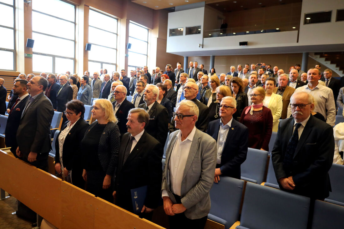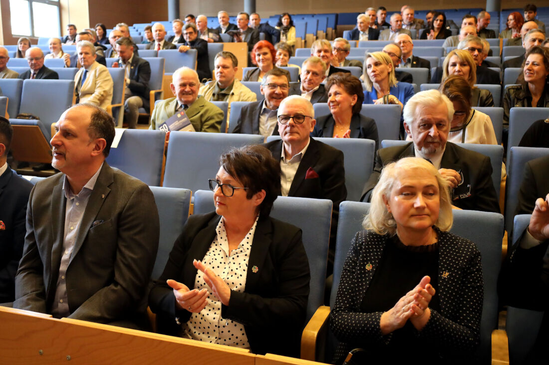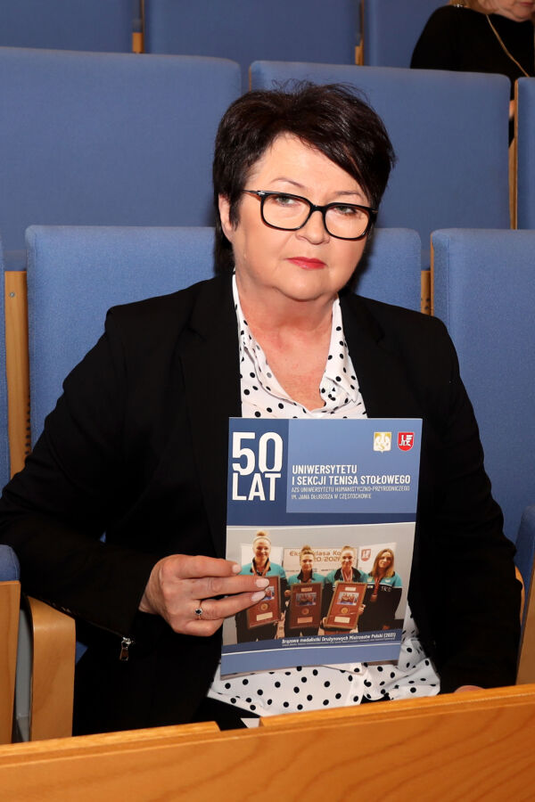 Imiennie przywitani zostali zaproszeni przedstawiciele różnych szczebli władz, niemal wszyscy oni przed laty zaangażowani byli w działalność AZS-u poprzez czynne uprawianie sportu. List od Wiceministra Kultury i Dziedzictwa Narodowego, Posła na Sejm RP Szymona Giżyńskiego odczytała w Jego zastępstwie Grażyna Matyszczak, Dyrektor Biura Poselskiego. – To pół wieku pracy na rzecz upowszechniania sportu oraz promocji Uczelni i Częstochowy w kraju i za granicą. Liczne sukcesy klubu i jego zawodników, które trudno zliczyć na przestrzeni 50 lat, szczególnie w tenisie stołowym i podnoszeniu ciężarów, ale także w koszykówce czy siatkówce ustaliły silną markę AZS UJD Częstochowa w środowisku całego akademickiego sportu w Polce – napisał w swoim liście do Zarządu KU AZS Wiceminister. Przy okazji przekazała też życzenia i gratulacje w imieniu Senatora RP Ryszarda Majera.