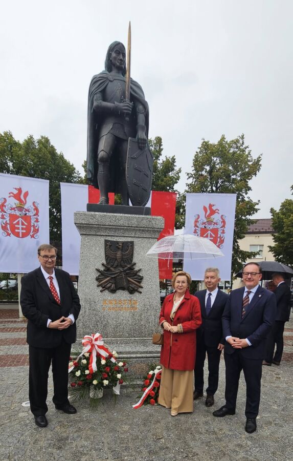 Wsparcia przy realizacji dzieła udzieliły władze Gminy i Miasta Koziegłowy, pomagając, między innymi, załatwić pozwolenia konserwatorskie. – Bardzo dziękuję pomysłodawcy, sponsorowi i wykonawcy pomnika, Panu Mieczysławowi Znamierowskiemu oraz Panu Leszkowi Znamierowskiemu. Obaj Panowie są pasjonatami historii i wielkimi miłośnikami Ziemi Koziegłowskiej. Dzieło Panów pozostanie na wieki. Dziękuję także wszystkim, którzy swą obecnością zaszczycili uroczystość i którzy wsparli nasze dzieło – mówił burmistrz Jacek Ślęczka. Jak podkreślił, dla mieszkańców Koziegłów i całego regionu pomnik Krystyna z Koziegłów w centralnym miejscu miasta to przede wszystkim oddanie hołdu historii i dziedzictwu kulturowemu Ziemi Koziegłowskiej. – To dowód, że pamięć o bohaterach nie ginie, a ich czyny mogą inspirować kolejne pokolenia. Pomnik Krystyna z Koziegłów to również symbol naszej dumy i poczucia wspólnoty – element, który będzie przypominał o wartościach, jakie od wieków łączyły mieszkańców Ziemi Koziegłowskiej. Musimy nie tylko dbać o teraźniejszość, ale także pielęgnować pamięć o przeszłości, oddając hołd bohaterom, którzy kształtowali naszą tożsamość – dodał burmistrz Jacek Ślęczka.