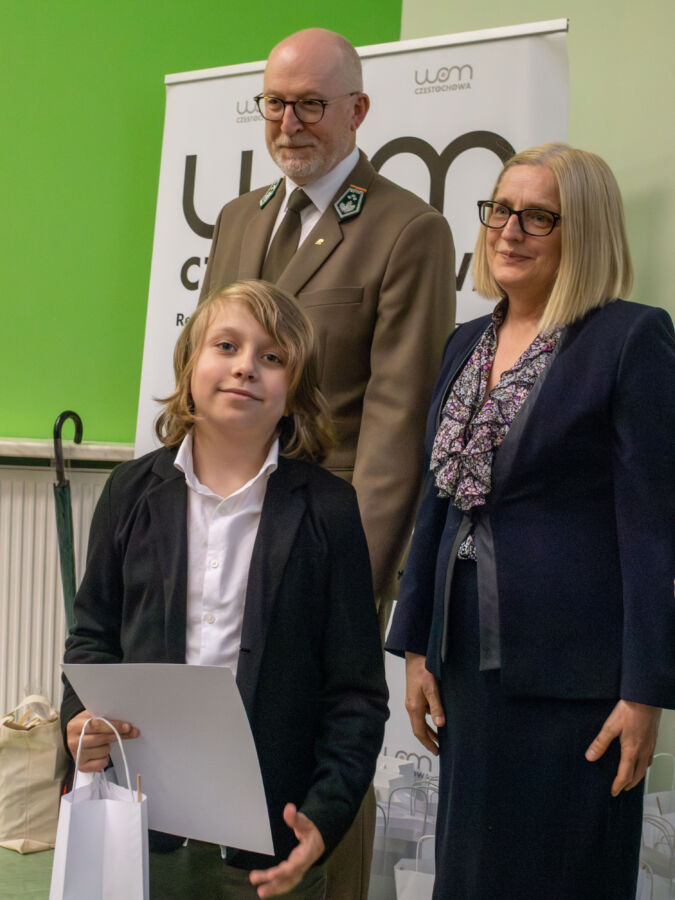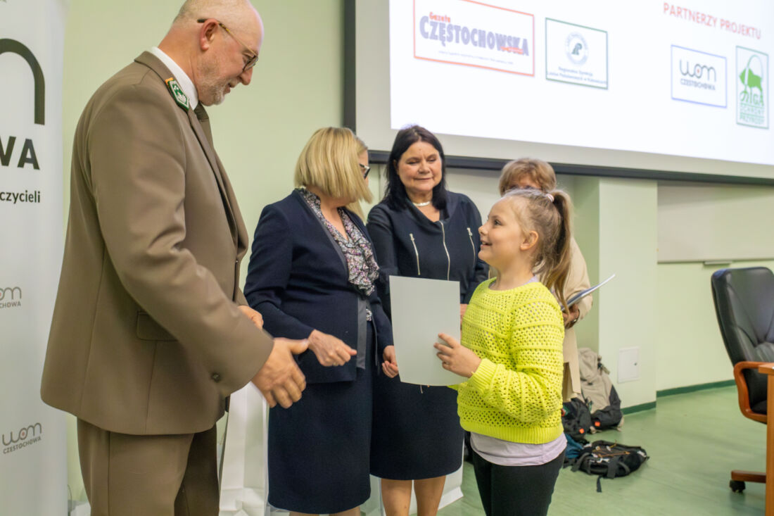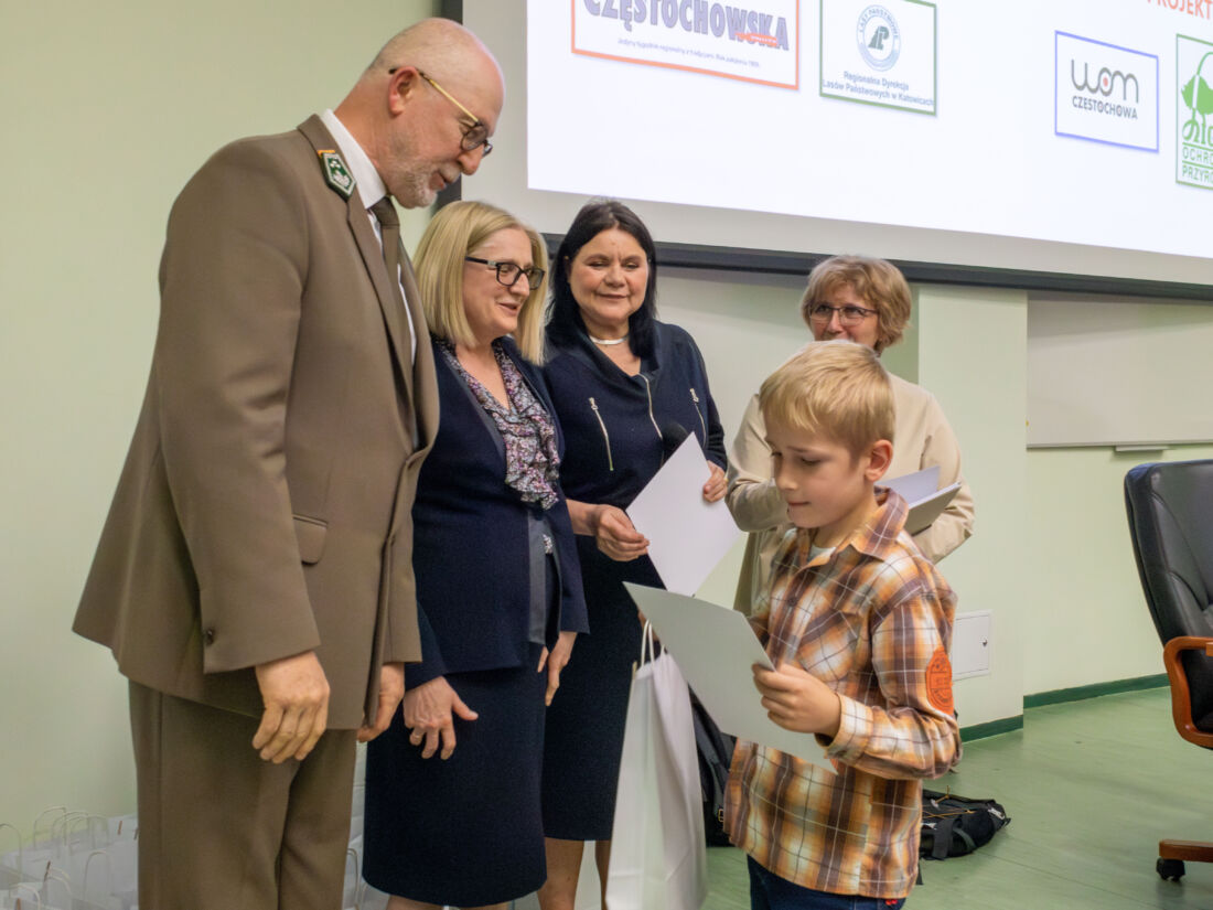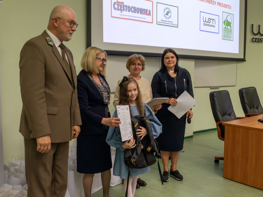Na spotkanie licznie stawili się nagrodzeni uczniowie wraz z opiekunami. Przedstawiciele organizatorów konkursu: rzecznik Regionalnej Dyrekcji Lasów Państwowych w Katowicach Sławomir Cichy, dyrektor RODN „WOM” Elżbieta Doroszuk, prezes Zarządu Okręgu Ligi Ochrony Przyrody w Częstochowie Beata Pusz i redaktor naczelna Tygodnika Regionalnego „Gazeta Częstochowska” Urszula Giżyńska witając laureatów gratulowali wspaniałych, kreatywnych prac i dziękowali za tak szeroki oddźwięk na nową propozycję edukacyjno-artystyczną. – Liczba uczestników pokazała, że lasy i przyroda są bliskie każdemu z was. Dziękuję w imieniu Pana Dyrektora Damiana Siebera i własnym za zaangażowanie i bardzo ciekawe zobrazowanie trudnej pracy leśnika stojącego na straży polskich lasów – powiedział rzecznik Sławomir Cichy.