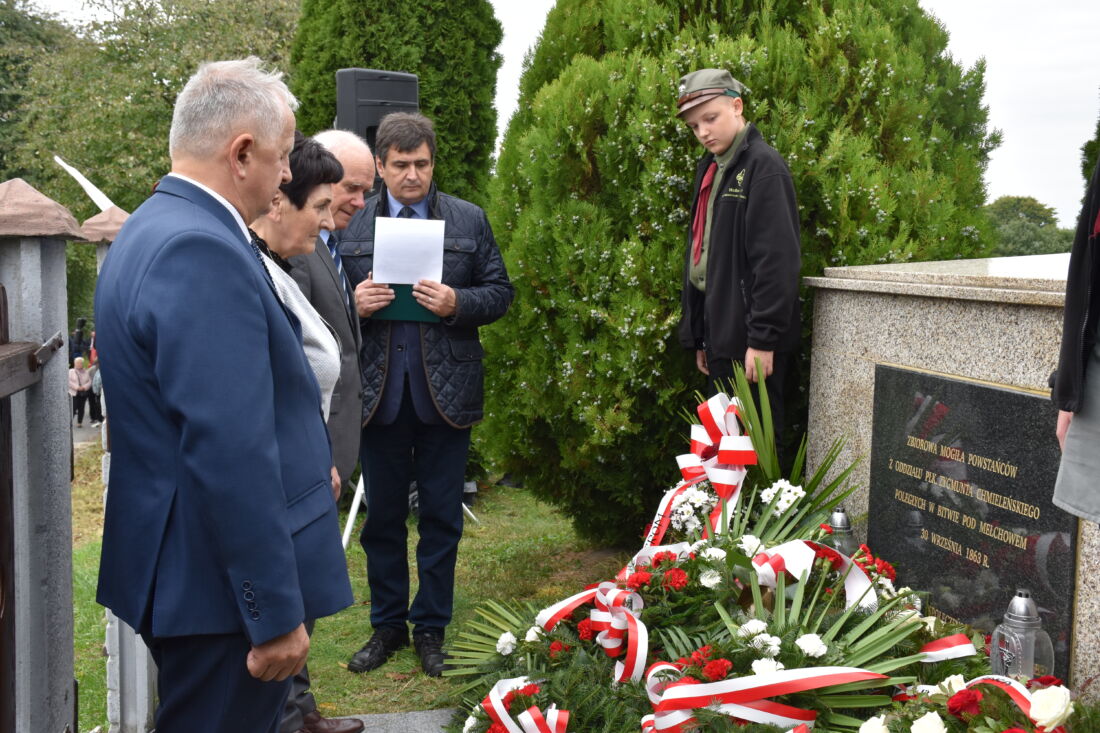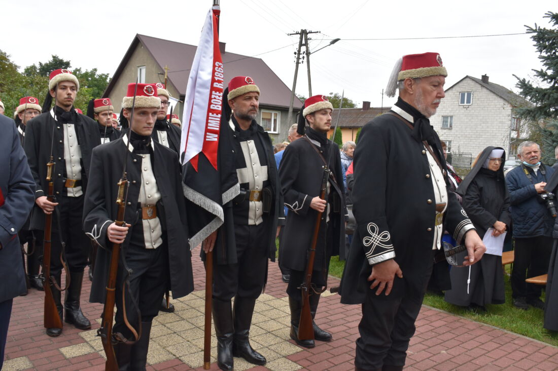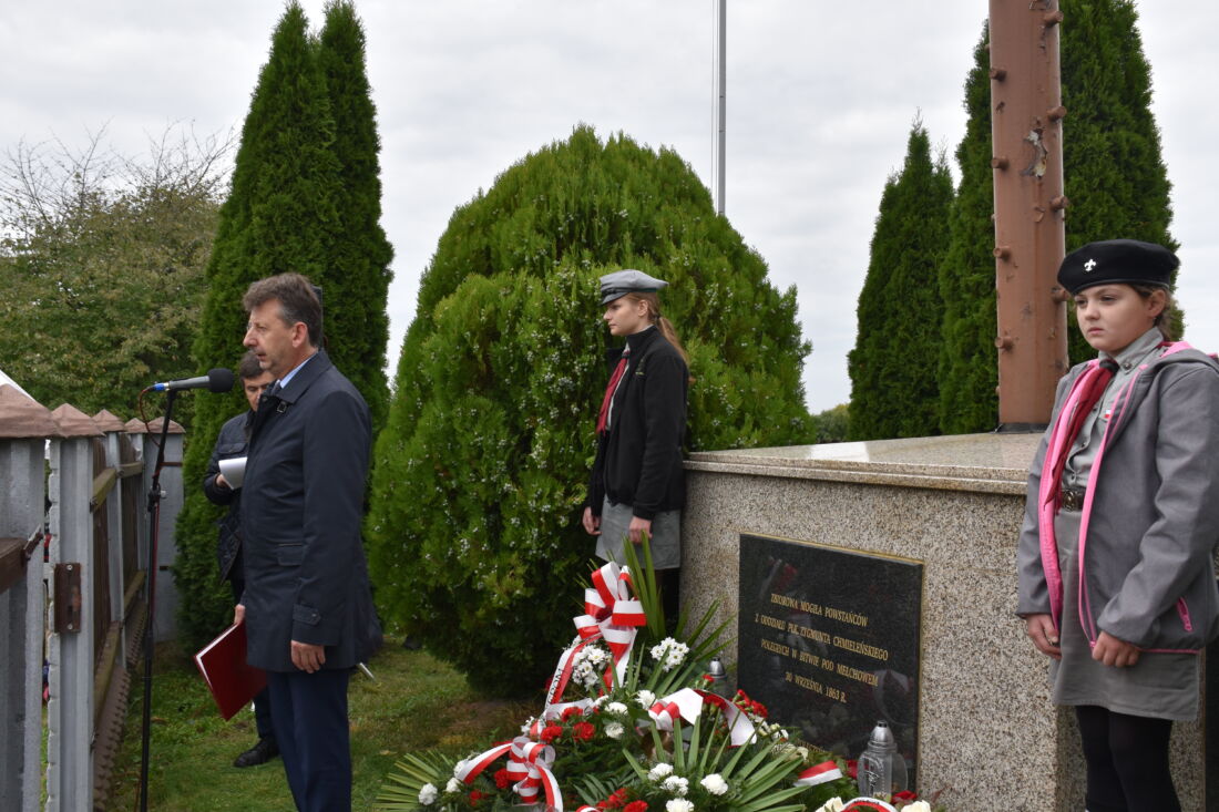 Po Eucharystii mieszkańcy oraz przybyli goście przeszli pod Pomnik Powstańców, gdzie złożono kwiaty. Słowa do mieszkańców skierowali: poseł Mariusz Trepka, w imieniu wiceministra rolnictwa i rozwoju wsi, posła Szymona Giżyńskiego – jego małżonka Urszula Giżyńska, redaktor naczelna „Gazety Częstochowskiej”, której towarzyszyła prezes Hutmaru Karolina Kowalska. Urszula Giżyńska, dziękując za zaproszenie, podkreśliła rolę wychowawczego znaczenia patriotycznych uroczystości. – Dziękujemy Państwu, za to że pamiętacie o bohaterach poległych w walkach o niepodległość Ojczyzny, że z taką troską kultywujecie pamięć o wydarzeniach, które odbyły się na Ziemi Lelowskiej przed 158 laty. To piękny wzorzec dla młodego pokolenia – powiedziała Urszula Giżyńska. List poseł Lidii Burzyńskiej odczytała jej asystentka Karolina Dominik-Kościańska. O patriotycznej wymowie celebry mówiła także radna powiatu częstochowskiego Marianna Dziura. Uroczystość pięknie spuentował wójt Gminy Lelów Krzysztof Molenda, przypominając o wartościach, jakie dzisiaj, w wolnej Polsce, powinniśmy pielęgnować.