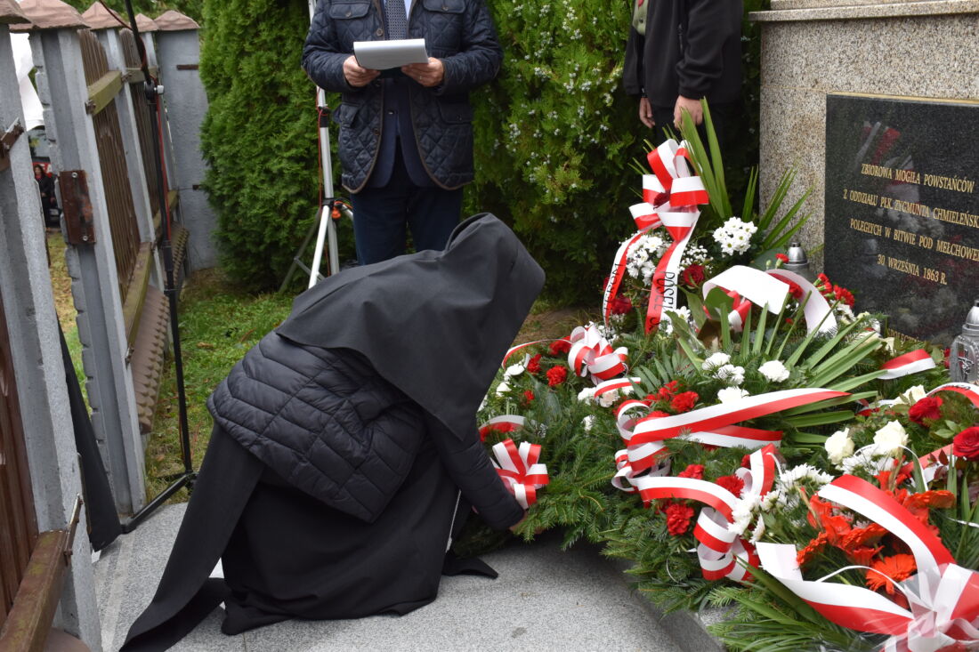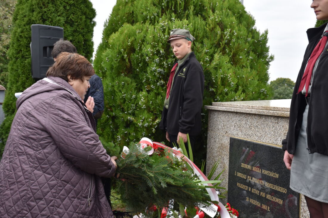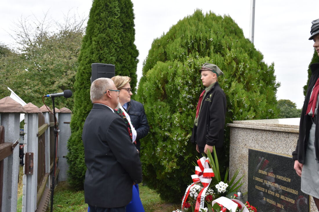 Uroczystość przy Pomniku Powstańców Styczniowych, będącym jednocześnie zbiorowym grobem powstańców poległych w walkach na Ziemi Lelowskiej, poprzedziło złożenie kwiatów na grobie powstańców na cmentarzu w Lelowie oraz Msza Święta w Kaplicy św. Brata Alberta Chmielowskiego w Mełchowie. Proboszcz parafii Św. Marcina w Lelowie, ksiądz Marian Ćwiek, podczas kazania podkreślił wartości, za które powstańcy oddali swoje życie. – Triada „Bóg Honor i Ojczyzna” była świętością dla powstańców. Z tymi hasłami na sztandarach i w sercach stawiali czoła groźnemu zaborcy, bo umiłowali wolność i pragnęli żyć w niepodległym kraju – podkreślał ksiądz kanonik Marian Ćwiek.