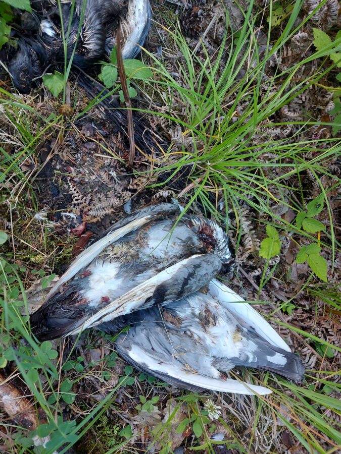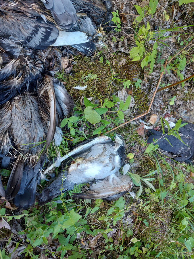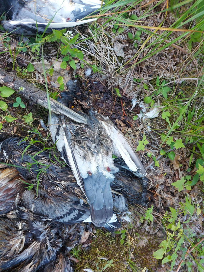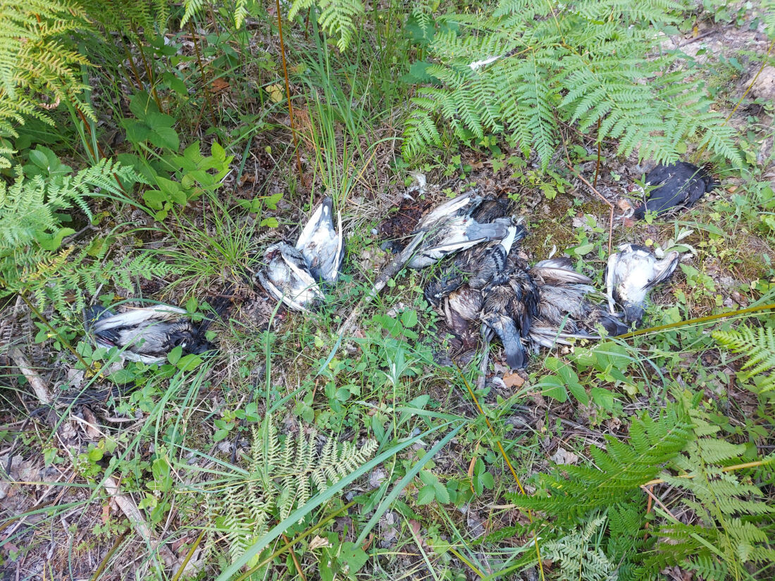 Załączam zdjęcia znalezionych martwych ptaków bez nóg.