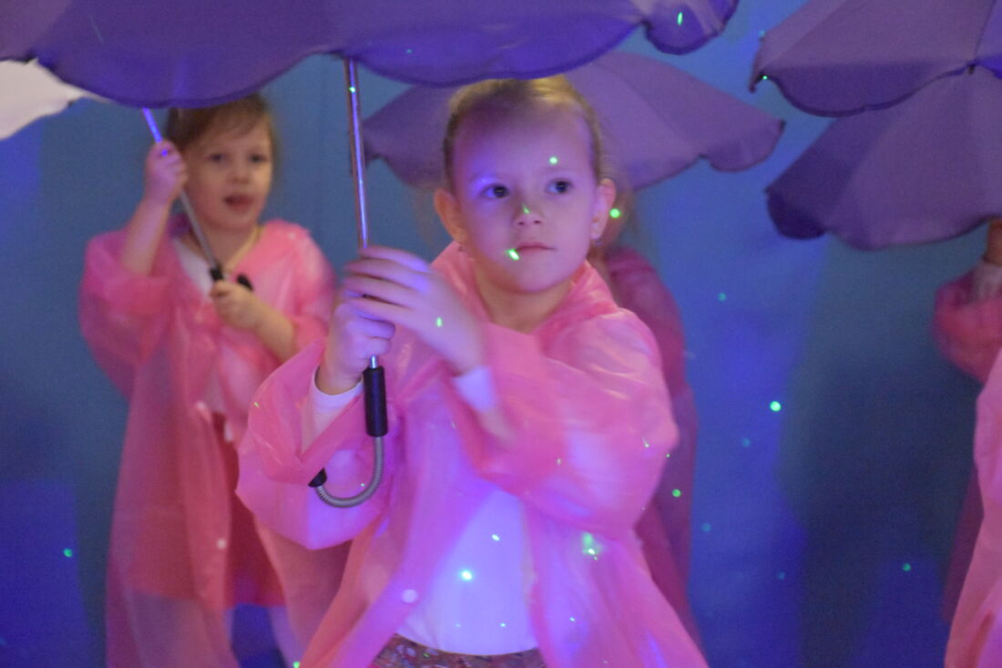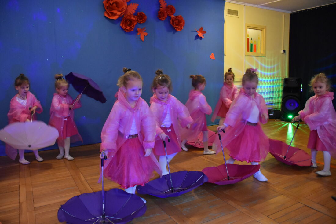 Show muzyczno-taneczne rozpoczęła młodziutka Zuzanna Kot, z wdziękiem wykonując miniaturę fortepianową autorstwa Eleny Davis „Maszyna do szycia”. Potem dzieci z grupy przedszkolnej „Pszczółki” tańczyły i grały, chwytając za serce publiczność, która popisy maluchów przyjmowała entuzjastycznie.