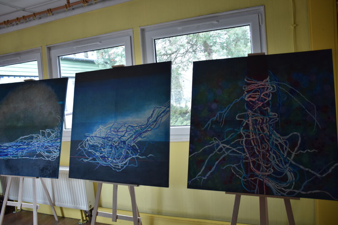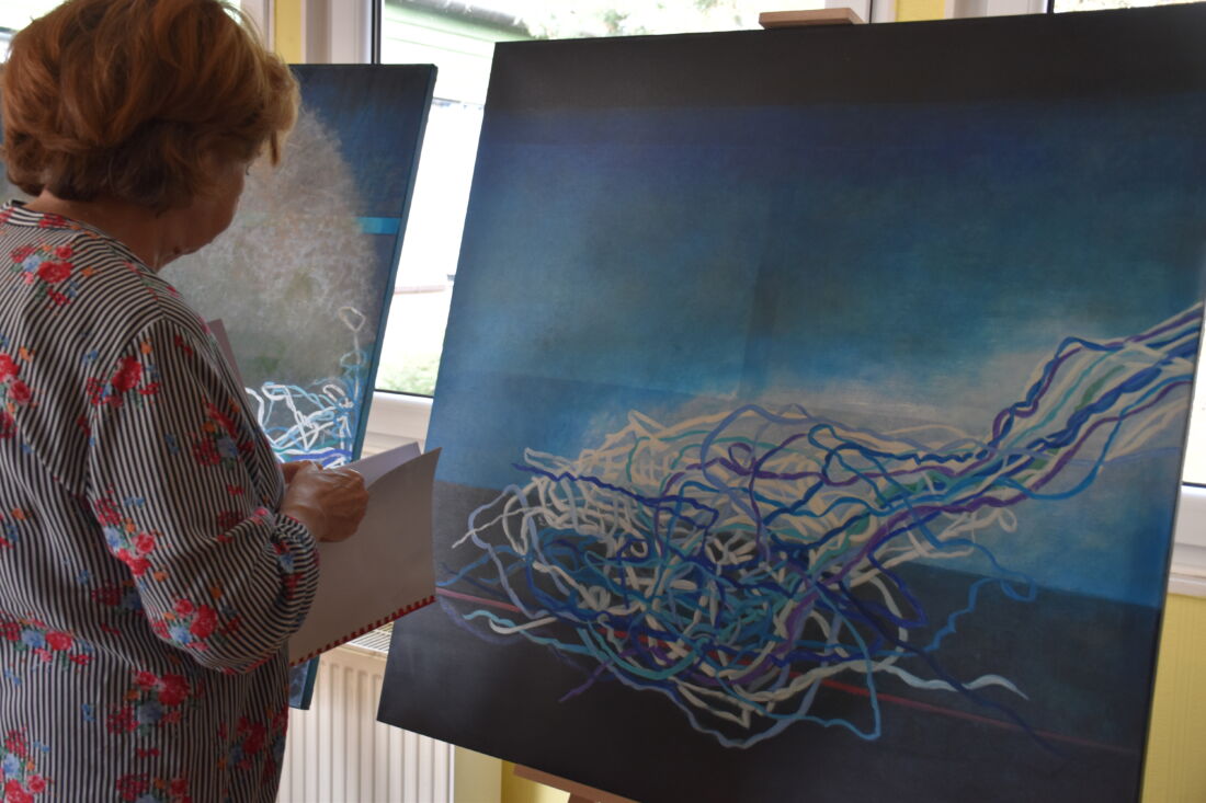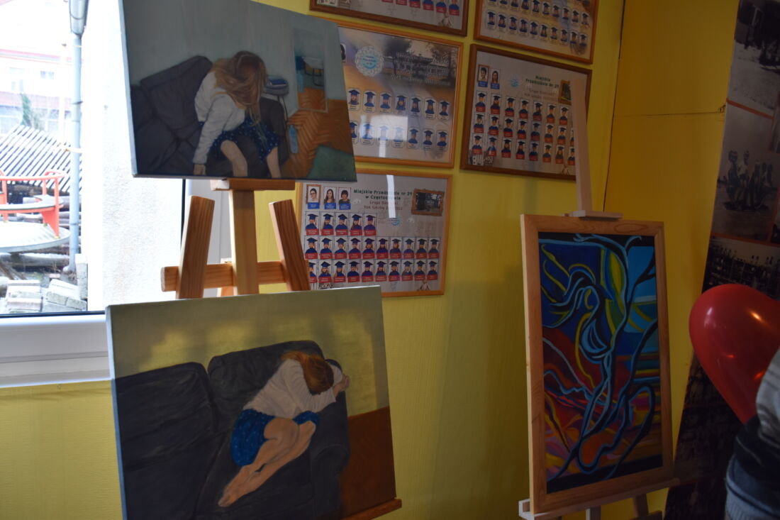 Spotkaniu towarzyszyła prezentacja prac malarskich Jadwigi Włodarskiej, członkini Częstochowskiego Stowarzyszenia Plastyków im. Jerzego Dudy-Gracza, absolwentki Uniwersytetu Humanistyczno-Przyrodniczego im. Jana Długosza w Częstochowie na Wydziale Sztuki i Kierunku: Malarstwo. Wśród obrazów można było podziwiać pejzaże, martwą naturę i abstrakcyjny cykl przygotowany przez artystkę na obronę dyplomu magisterskiego ,,Motyw wędrówki od poczęcia do kresu życia ludzkiego”. Jadwiga Włodarska maluje od kilku lat i jak podkreśla: postanowiła dogonić życie realizując marzenia z lat młodości o malowaniu i rysowaniu.