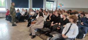 Młodzież z zaciekawieniem wysłuchała rozmowy z mjr. Adamem Kaletą, którą poprowadzili uczniowie klasy III c TS Zuzanna Jaksik i Kacper Frukacz. Gościem specjalnym była Urszula Giżyńska redaktor naczelna ,,Gazety Częstochowskiej”.