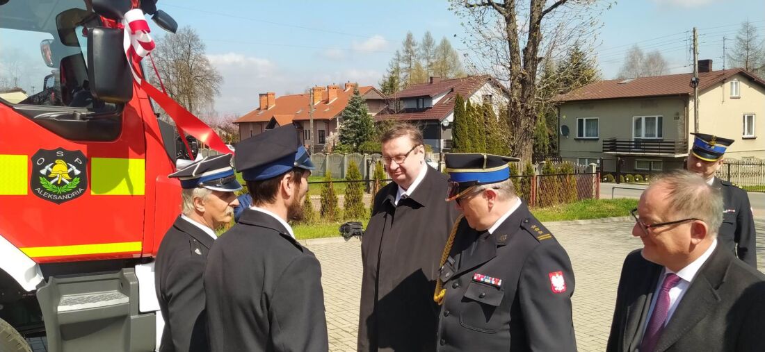 Wójt Jerzy Żurek, ciesząc razem ze strażakami, szczególnie podziękował wiceministrowi Szymonowi Giżyńskiemu. – Wiele dobrego dzieje się w naszej gminie, także tu w Aleksandrii. To zasługa wspierającego nas wiceministra Szymona Giżyńskiego, rozumiejącego nasze potrzeby, za co bardzo dziękuję. Wspomnę inwestycje, które możemy realizować właśnie dzięki pomocy Pana Ministra, a jest ich sporo: hala sportowa w Aleksandrii, przedszkole i żłobek w Konopiskach, Dom Seniora w Konopiskach, budowa nowych dróg i oświetlenia, budowa boiska w Konopiskach, czy wreszcie nowe samochody do Ochotniczych Straży Pożarnych. To wszystko jest przecież dla mieszkańców naszej gminy – podkreślił Wójt.