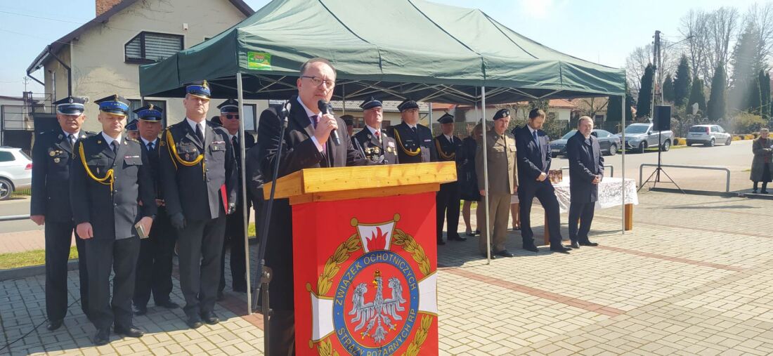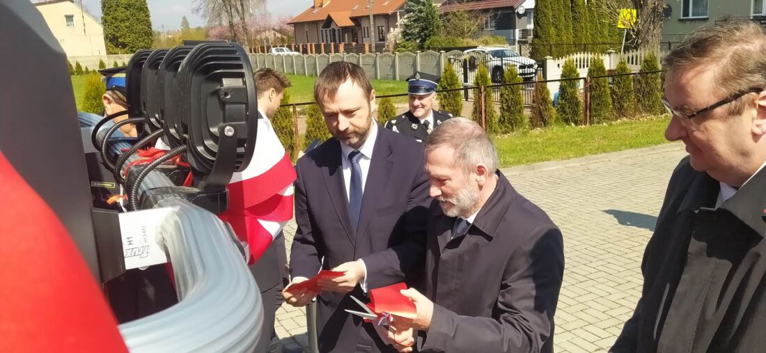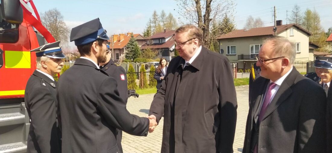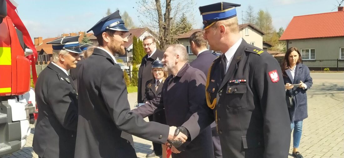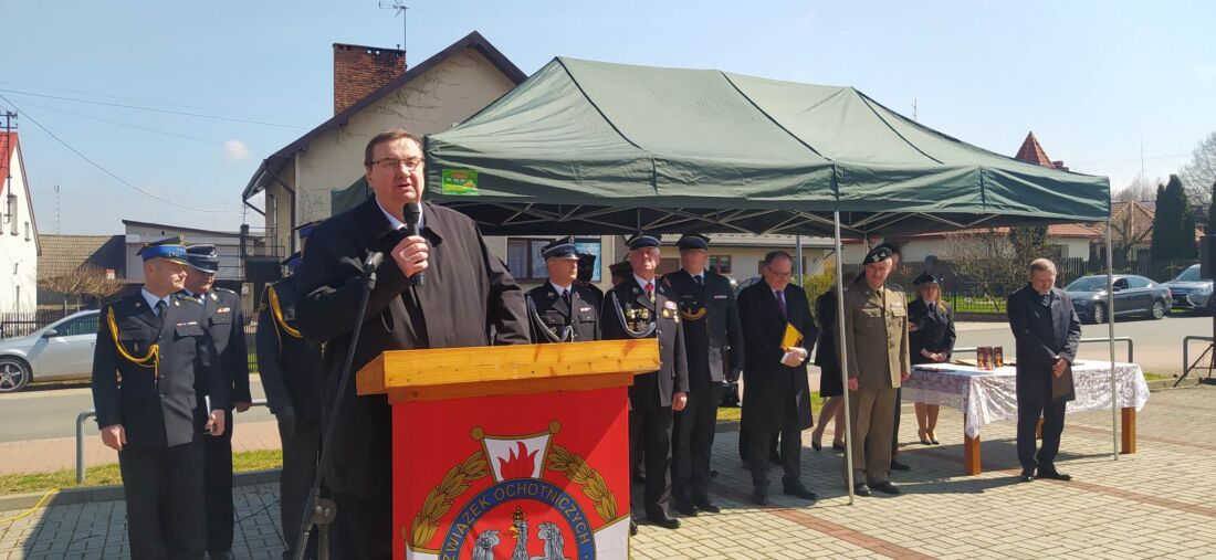 Wiceminister Szymon Giżyński gratulując druhom nabytku przypomniał czynione realne działania rządu na rzecz Ochotniczych Straży Pożarnych. – Wszystko to, co się rozgrywa w obszarze pomocy rządu Rzeczpospolitej dla straży pożarnych ma na celu podniesienie poziomu ich bezpieczeństwa. Poza samochodami oprócz sprzętu z wielką radością przyjęto dodatki do emerytur dla strażaków oraz wsparcie młodzieżowych drużyn. Społeczność wiejska będzie też wspomożona dodatkami dla sołtysów, dzieją się również ważne rzeczy pomocowe wobec środowiska Kół Gospodyń Wiejskich. Z pewnością wiele parafii korzysta z różnych form dofinansowania swojej działalności prospołecznej, wyjątkowo szeroki strumień wsparcia popłynął tam, gdzie są zabytkowe kościoły. To wszystko dotyczy osób, ale też budowania więzi międzyludzkich, prestiżu środowisk i konkretnych osób oraz więzi międzyinstytucjonalnych. Będziemy tej drodze wierni, bo nasze działania mają charakter systemowy. Słyszymy od najstarszych strażaków, że nie pamiętają takiego strumienia dóbr w postaci samochodów, jakie od kilku lat na polską wieś i do polskich strażaków spływają. Dla Państwa nowy samochód to oferta nowej perspektywy. Dodam, że samochody otrzymują najlepsi, najbardziej operatywni i tacy, którzy mają opiekę w postaci samorządu i instytucji państwowych. Nowy samochód świadczy o dostrzeżeniu Państwa potrzeb, znakomitym przygotowaniu strażaków z tej jednostki i bardzo dobrej współpracy z Państwa przyjaciółmi – powiedział wiceminister Szymon Giżyński.