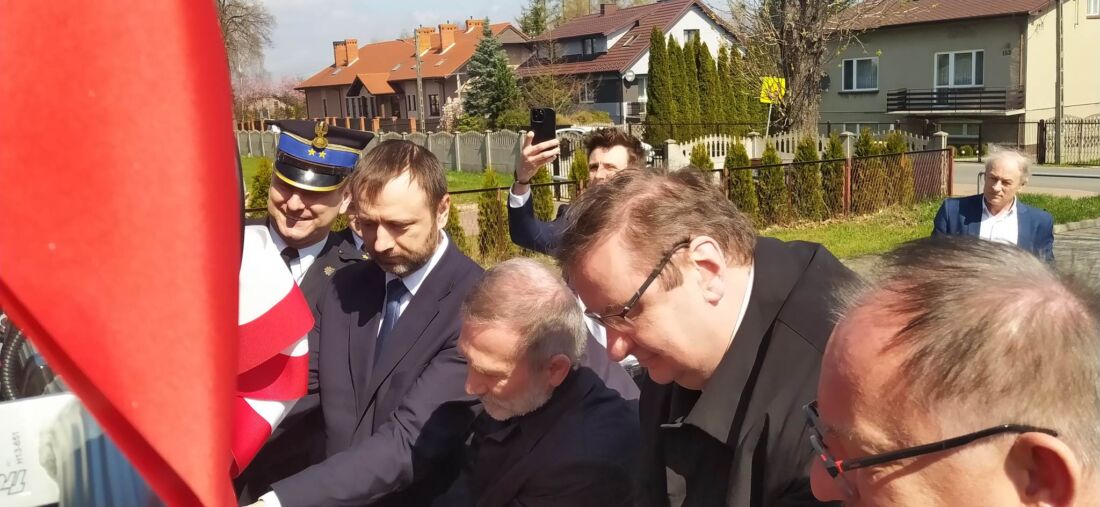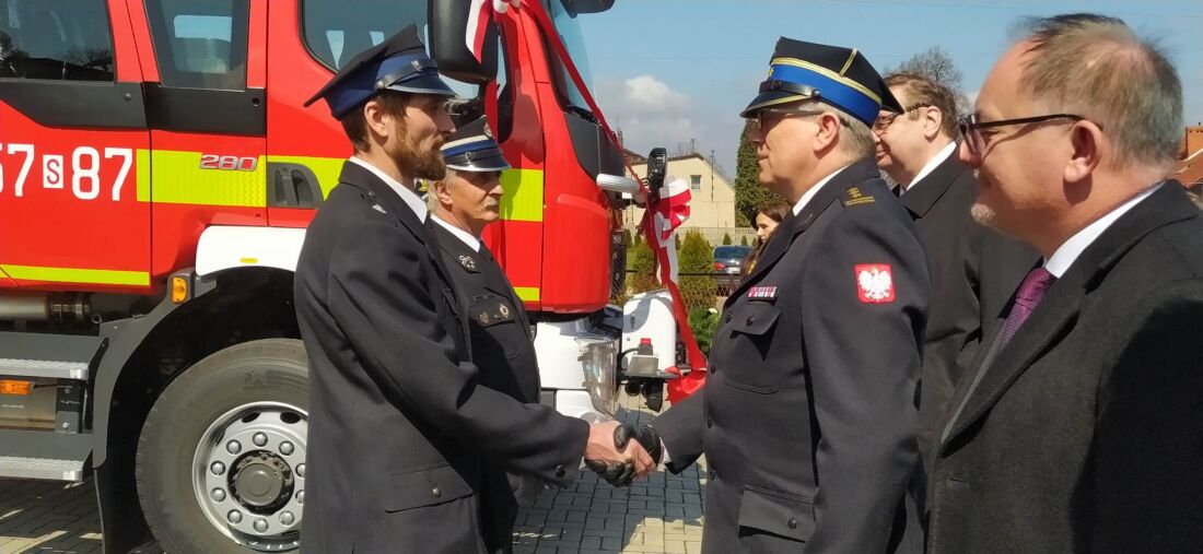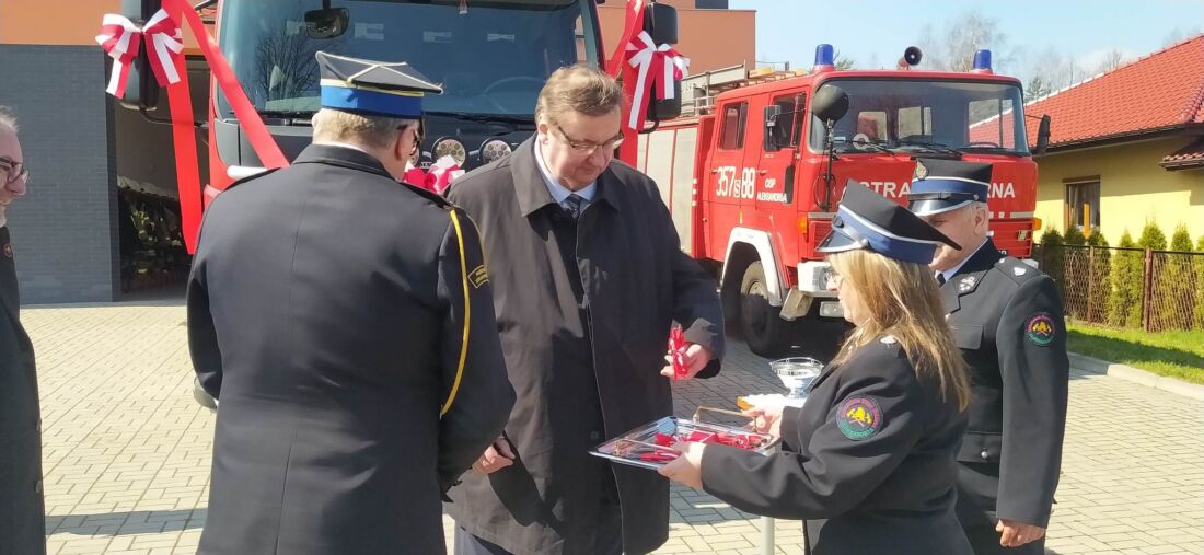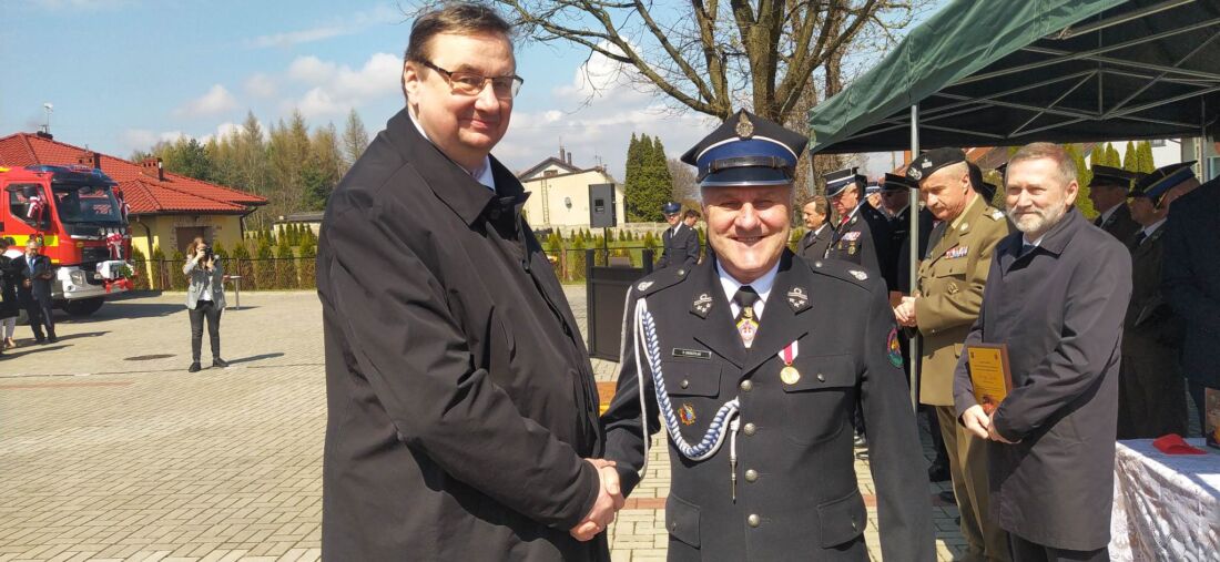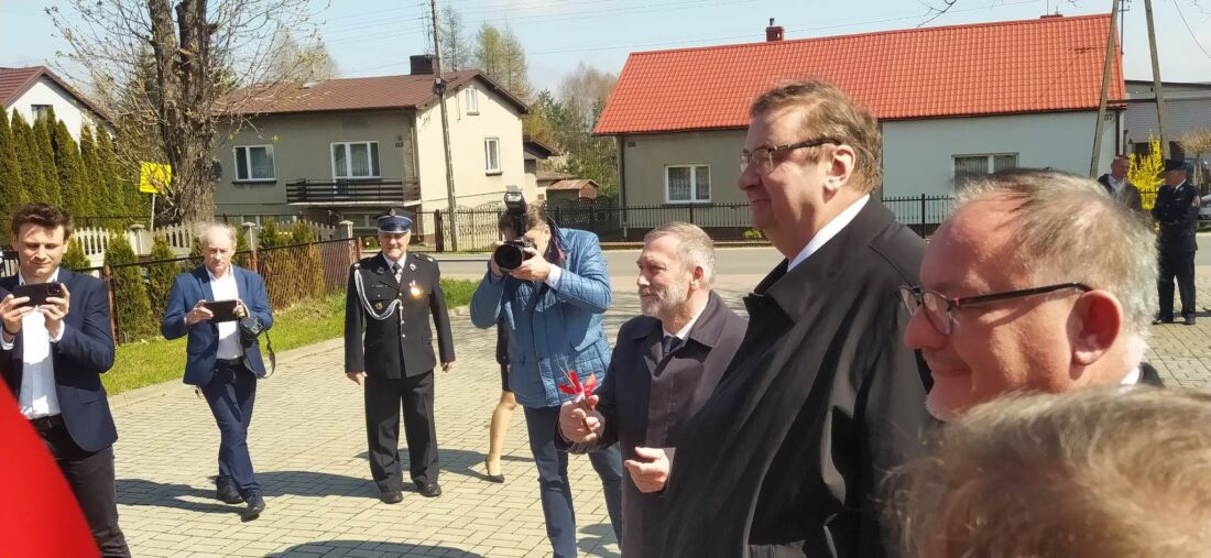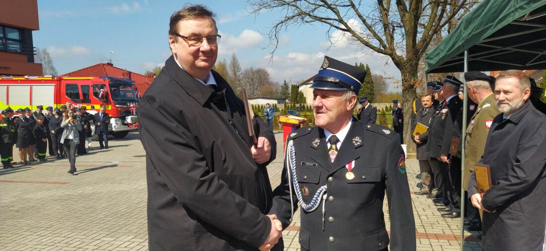 Wiceminister Szymon Giżyński gratulując druhom nabytku przypomniał czynione realne działania rządu na rzecz Ochotniczych Straży Pożarnych. – Wszystko to, co się rozgrywa w obszarze pomocy rządu Rzeczpospolitej dla straży pożarnych ma na celu podniesienie poziomu ich bezpieczeństwa. Poza samochodami oprócz sprzętu z wielką radością przyjęto dodatki do emerytur dla strażaków oraz wsparcie młodzieżowych drużyn. Społeczność wiejska będzie też wspomożona dodatkami dla sołtysów, dzieją się również ważne rzeczy pomocowe wobec środowiska Kół Gospodyń Wiejskich. Z pewnością wiele parafii korzysta z różnych form dofinansowania swojej działalności prospołecznej, wyjątkowo szeroki strumień wsparcia popłynął tam, gdzie są zabytkowe kościoły. To wszystko dotyczy osób, ale też budowania więzi międzyludzkich, prestiżu środowisk i konkretnych osób oraz więzi międzyinstytucjonalnych. Będziemy tej drodze wierni, bo nasze działania mają charakter systemowy. Słyszymy od najstarszych strażaków, że nie pamiętają takiego strumienia dóbr w postaci samochodów, jakie od kilku lat na polską wieś i do polskich strażaków spływają. Dla Państwa nowy samochód to oferta nowej perspektywy. Dodam, że samochody otrzymują najlepsi, najbardziej operatywni i tacy, którzy mają opiekę w postaci samorządu i instytucji państwowych. Nowy samochód świadczy o dostrzeżeniu Państwa potrzeb, znakomitym przygotowaniu strażaków z tej jednostki i bardzo dobrej współpracy z Państwa przyjaciółmi – powiedział wiceminister Szymon Giżyński.