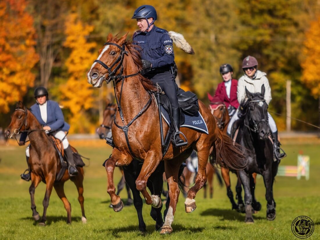 Tym razem szczęśliwie dopisała pogoda. Hubertus 2025 przebiegł w słonecznej aurze ku radości organizatorów oraz licznie przybyłych gości i miłośników koni. W gonitwie myśliwskiej dzielnie spisali się policjanci z ogniwa konnego częstochowskiej komendy. Mł. asp. Wojciech Grajcar na Widimie, st. post. Dawid Hadryś na Sasquach oraz st. sierż. Tomasz Całus na Romero dumnie reprezentowali swój garnizon.