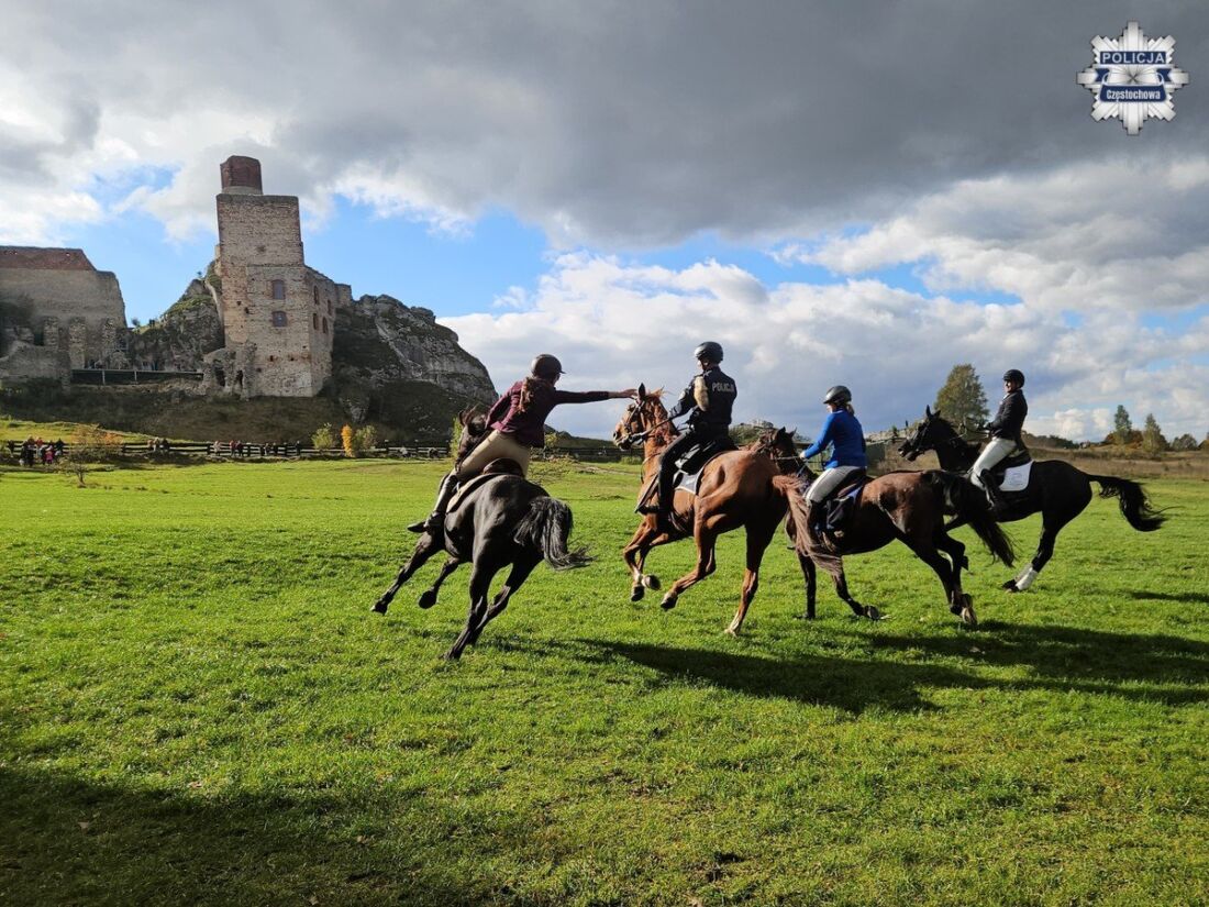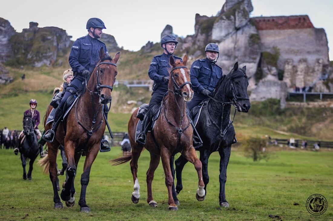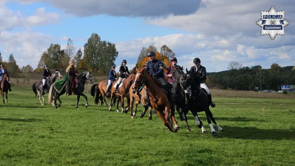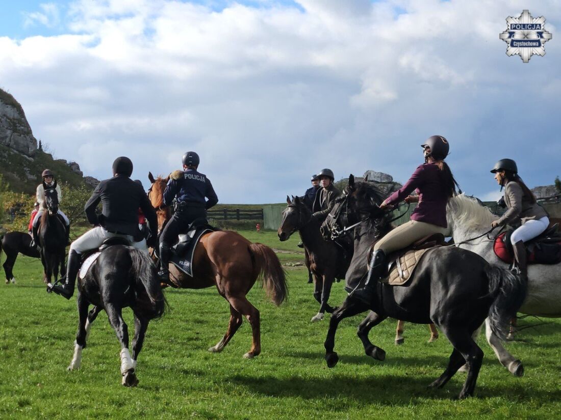 Tym razem szczęśliwie dopisała pogoda. Hubertus 2025 przebiegł w słonecznej aurze ku radości organizatorów oraz licznie przybyłych gości i miłośników koni. W gonitwie myśliwskiej dzielnie spisali się policjanci z ogniwa konnego częstochowskiej komendy. Mł. asp. Wojciech Grajcar na Widimie, st. post. Dawid Hadryś na Sasquach oraz st. sierż. Tomasz Całus na Romero dumnie reprezentowali swój garnizon.