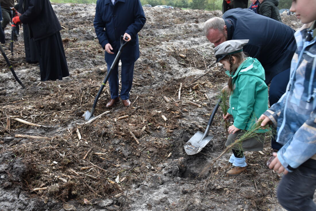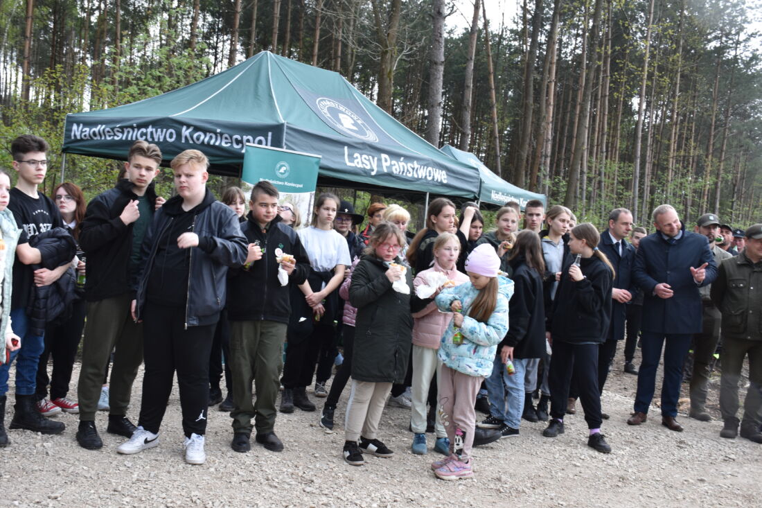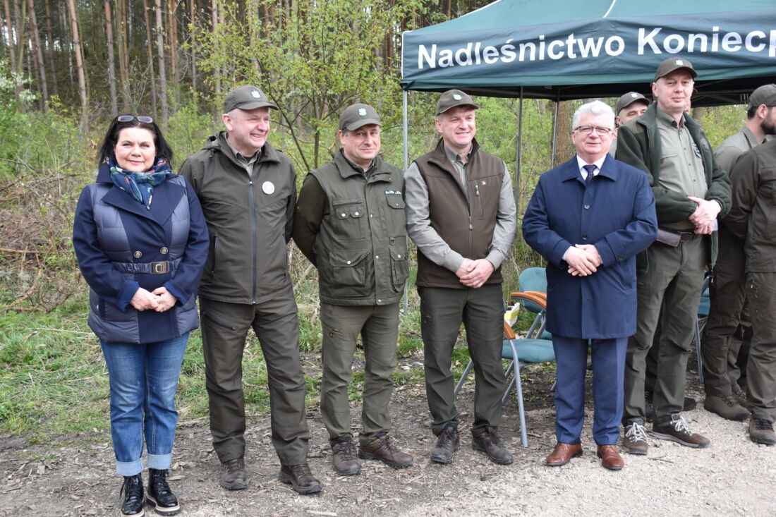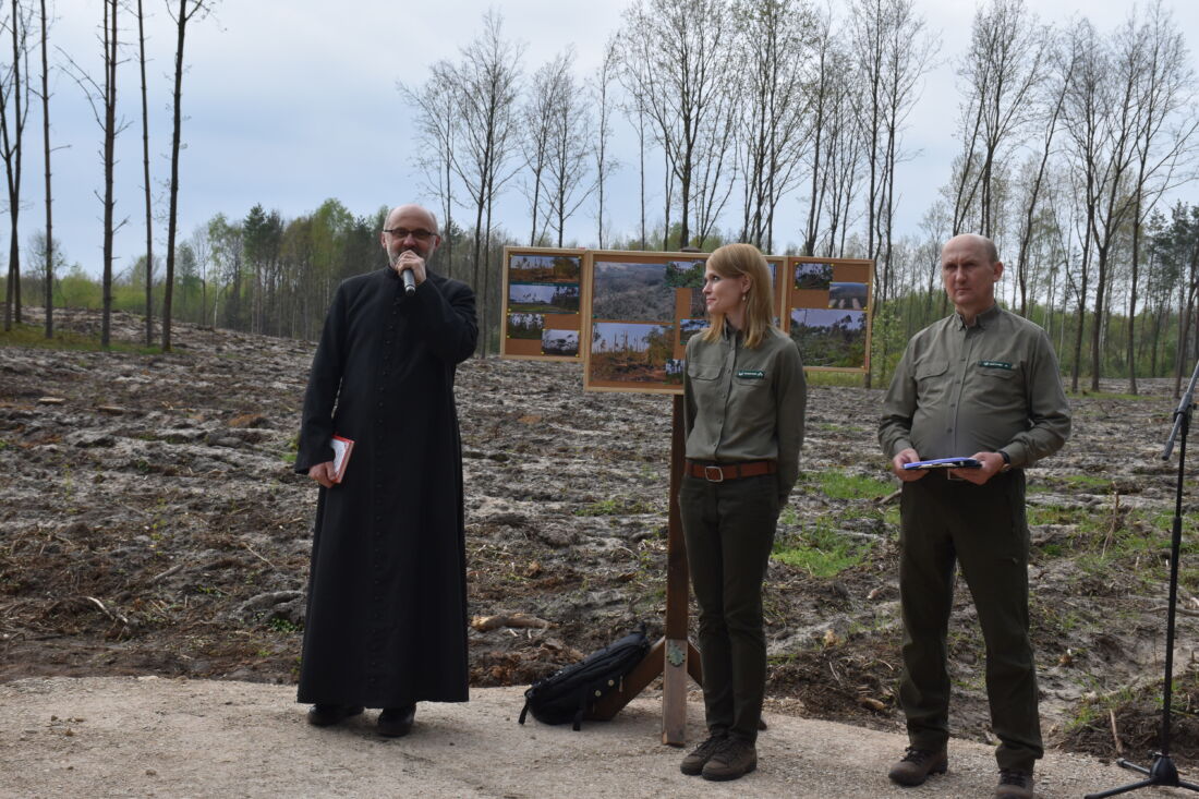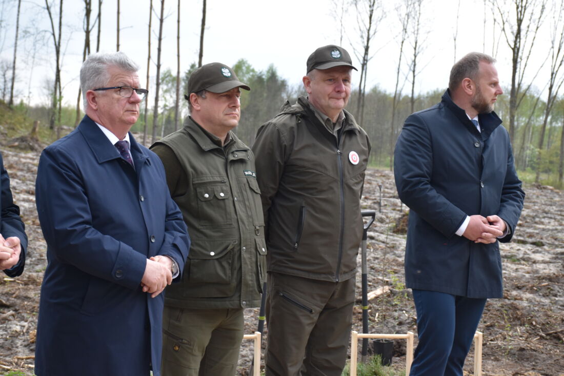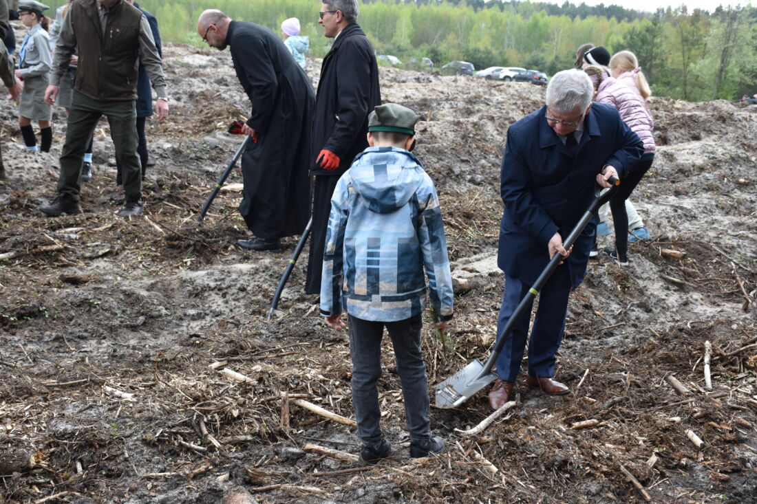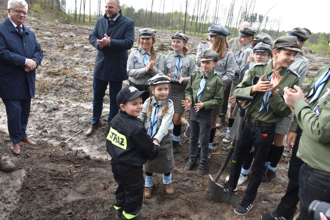 – Naszą misją jest codzienne dbanie o stan lasów – drzewostanu i zwierzyny. Zniszczony teren odnawialiśmy przez prawie dwa lata i dzisiaj Państwa pomoc pomoże przywrócić las środowisku. Wydarzenie łączymy z uczczeniem pamięci wielkiego Polaka św. Jana Pawła II, który kochał przyrodę i odnosił się do niej z niezwykłą wrażliwością. Umiłowanie przyrody wyniósł z domu rodzinnego, dlatego tak ważne jest wychowanie w duchu miłości i szacunku do natury – powiedział gospodarz, nadleśniczy Nadleśnictwa Koniecpol Przemysław Grabowski. Jednocześnie, w sposób szczególny, podziękował leśniczemu Robertowi Ciesielskiemu i podleśniczemu Marcinowi Barczykowi, którzy najbardziej przyczynili się do uporządkowania powierzchni pod sadzenie drzew.