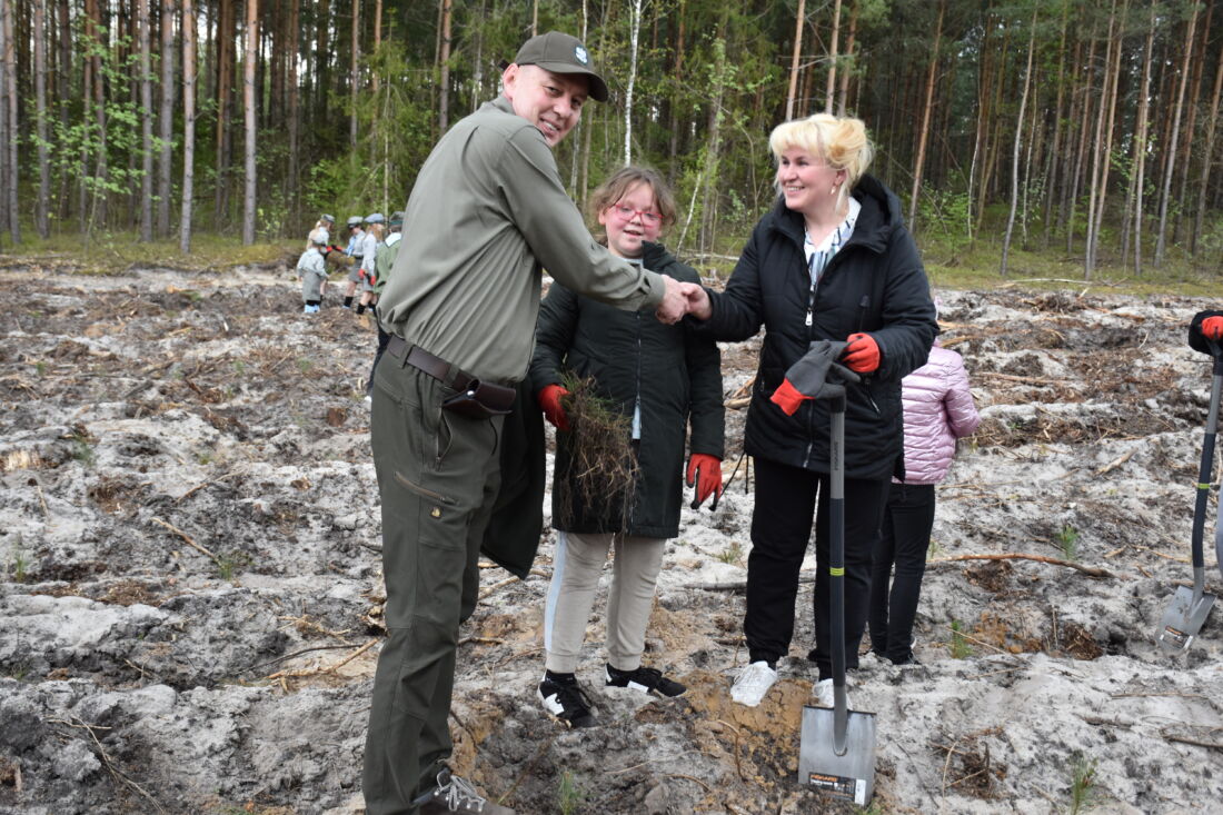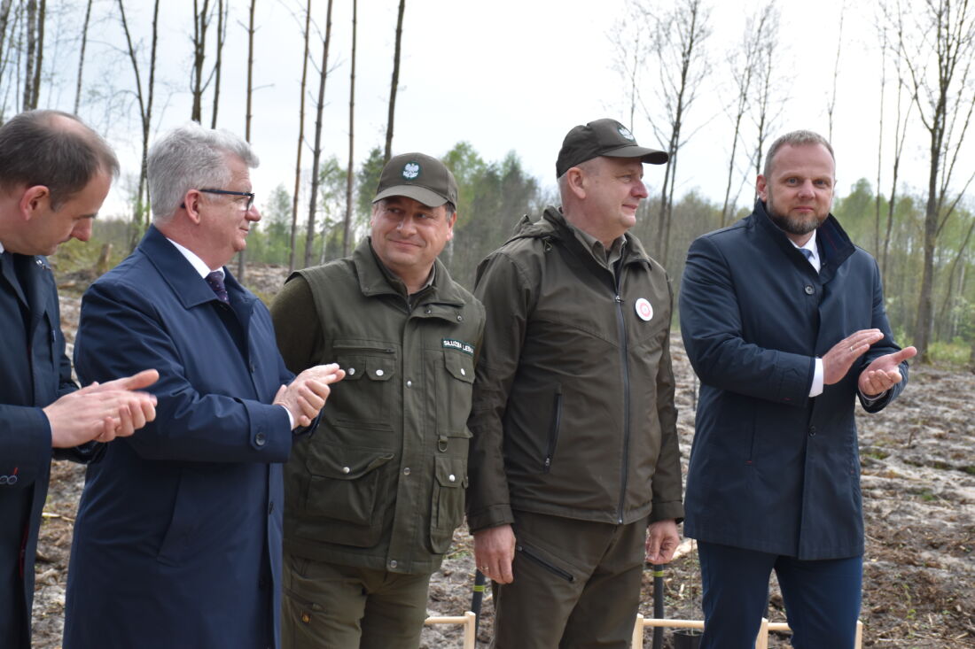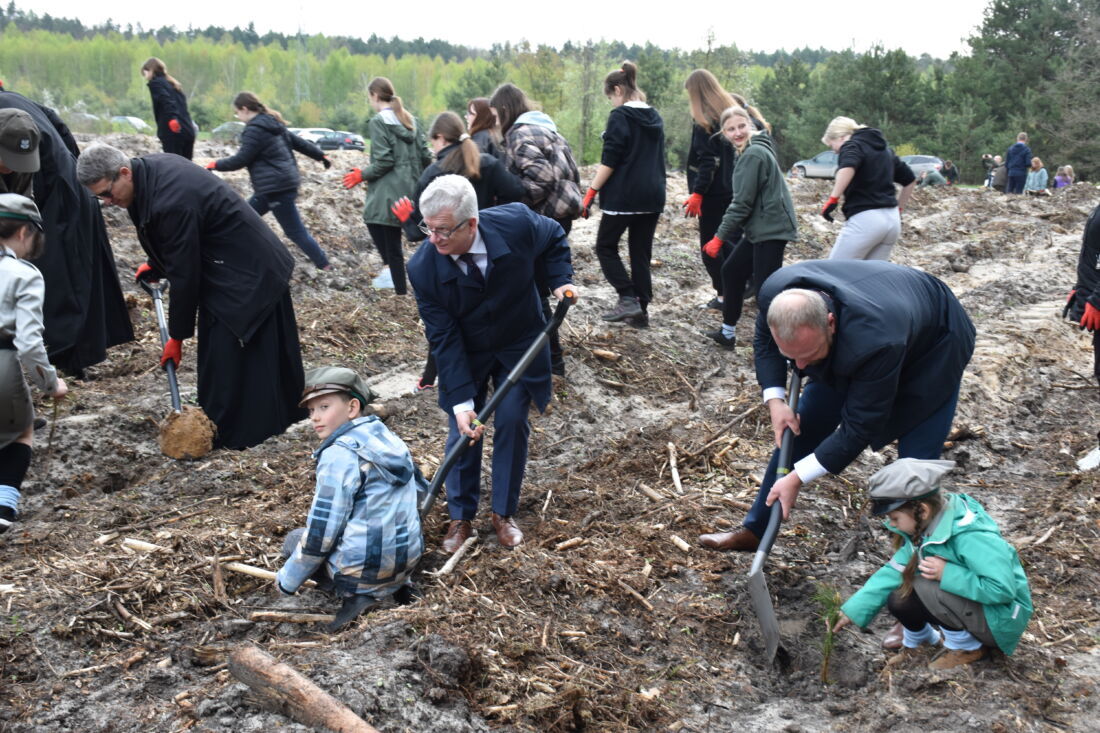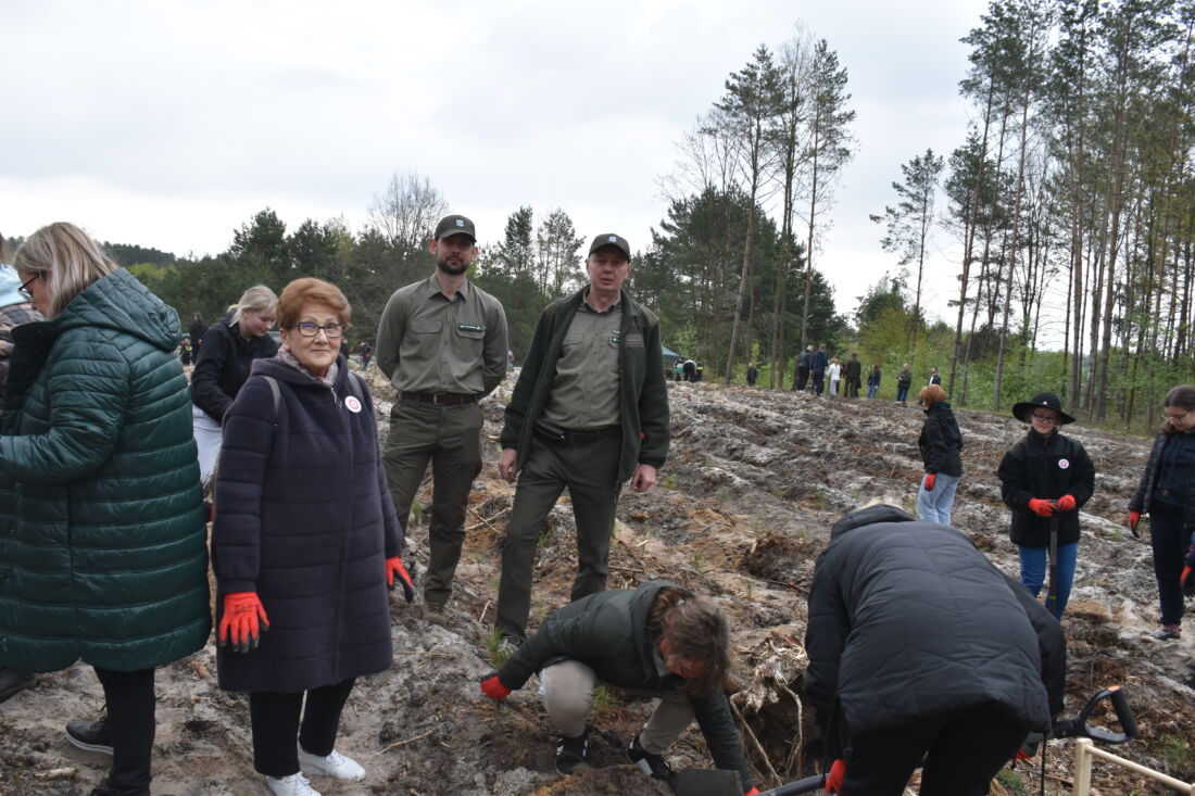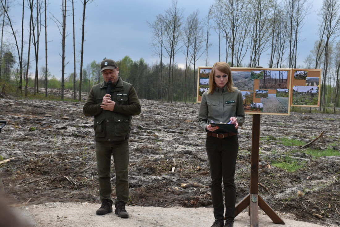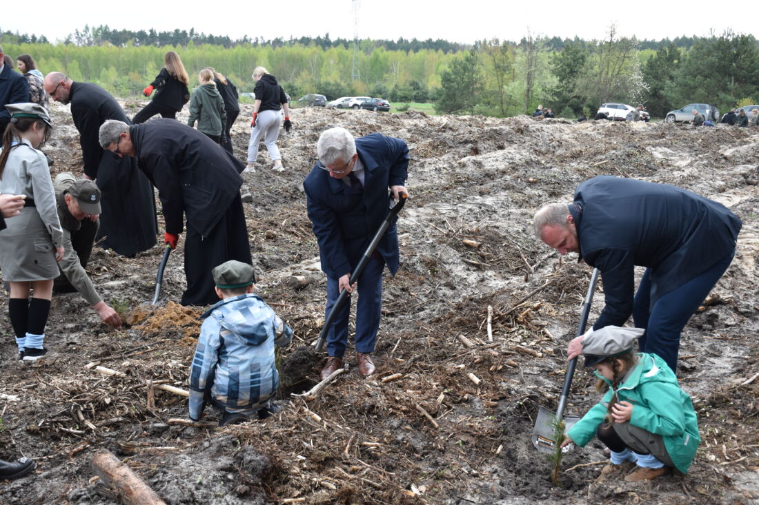 – Naszą misją jest codzienne dbanie o stan lasów – drzewostanu i zwierzyny. Zniszczony teren odnawialiśmy przez prawie dwa lata i dzisiaj Państwa pomoc pomoże przywrócić las środowisku. Wydarzenie łączymy z uczczeniem pamięci wielkiego Polaka św. Jana Pawła II, który kochał przyrodę i odnosił się do niej z niezwykłą wrażliwością. Umiłowanie przyrody wyniósł z domu rodzinnego, dlatego tak ważne jest wychowanie w duchu miłości i szacunku do natury – powiedział gospodarz, nadleśniczy Nadleśnictwa Koniecpol Przemysław Grabowski. Jednocześnie, w sposób szczególny, podziękował leśniczemu Robertowi Ciesielskiemu i podleśniczemu Marcinowi Barczykowi, którzy najbardziej przyczynili się do uporządkowania powierzchni pod sadzenie drzew.