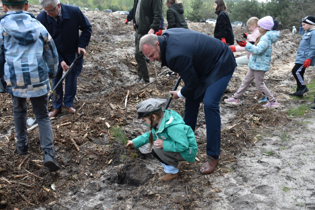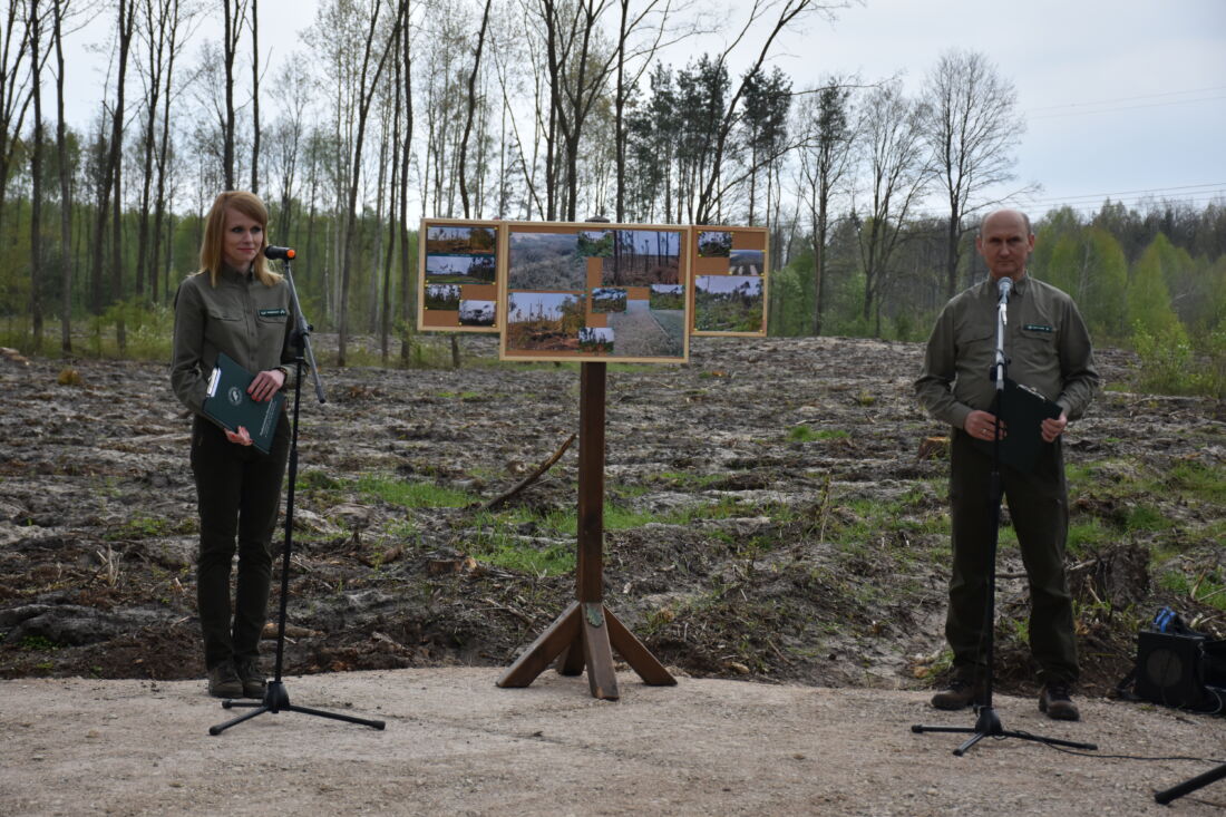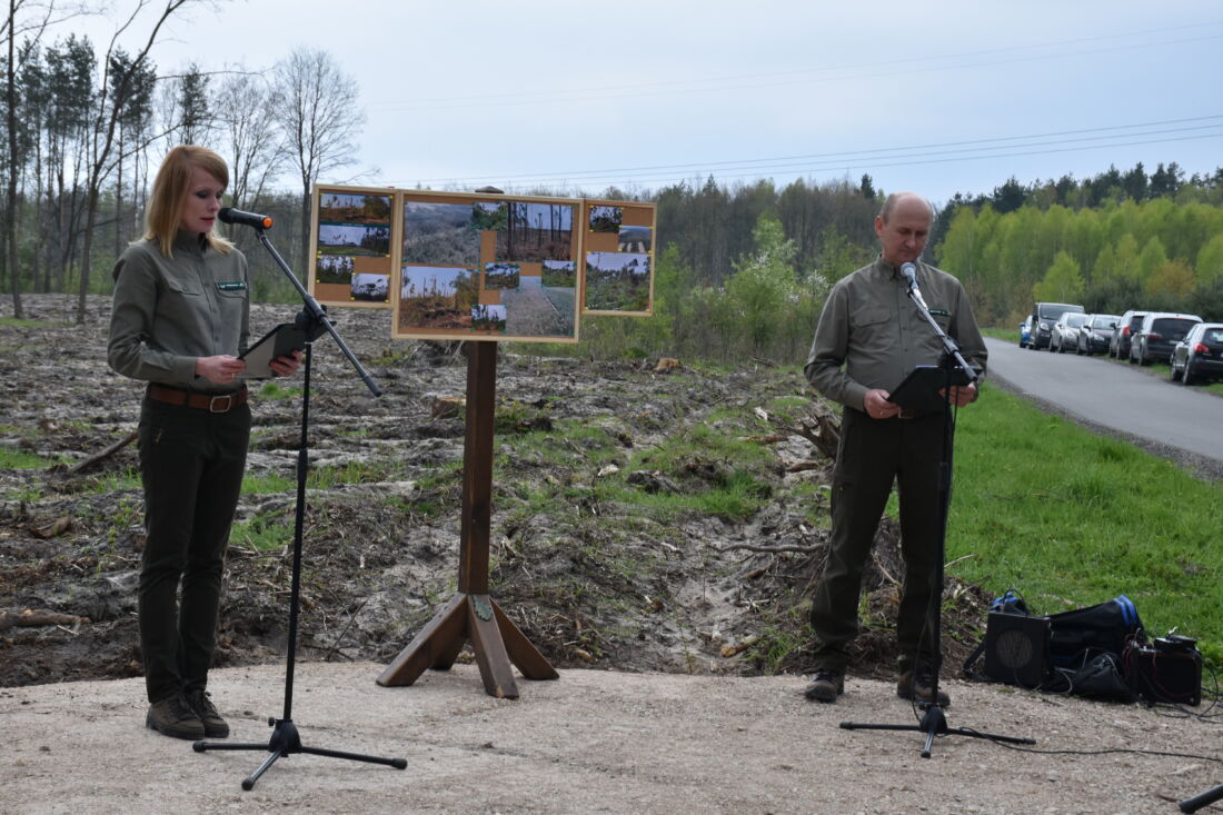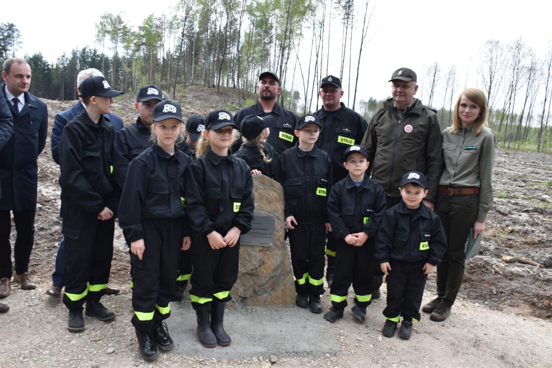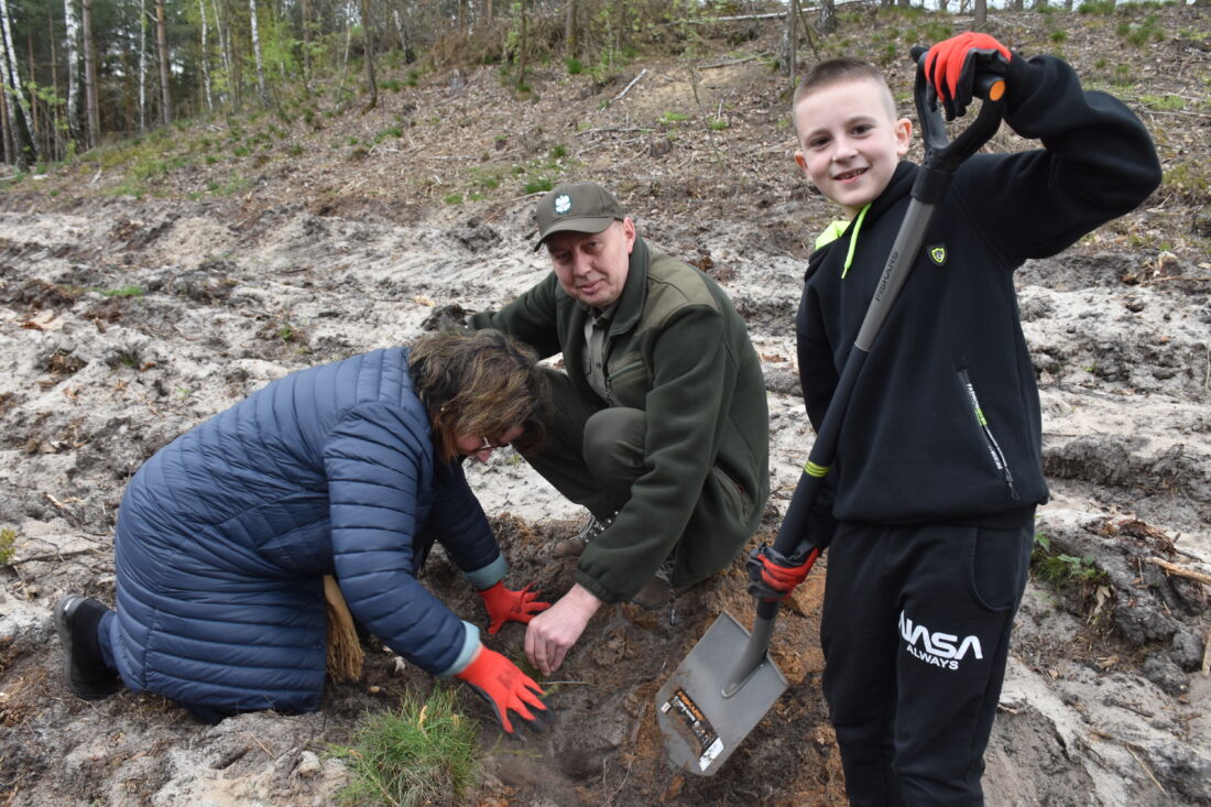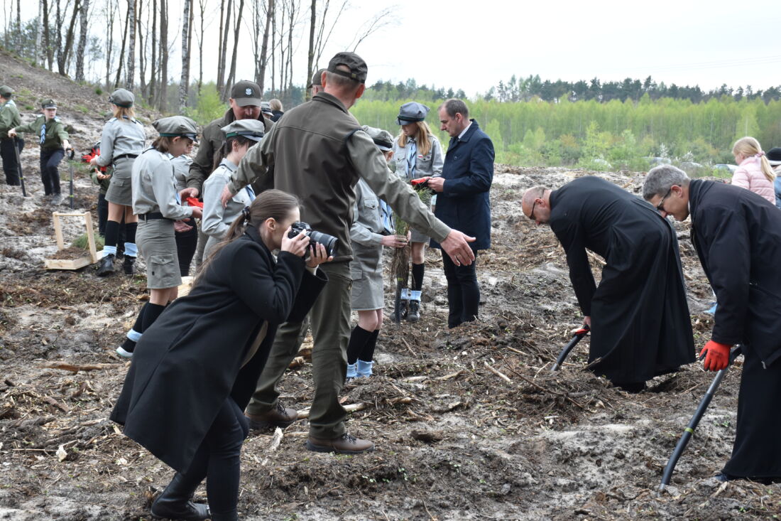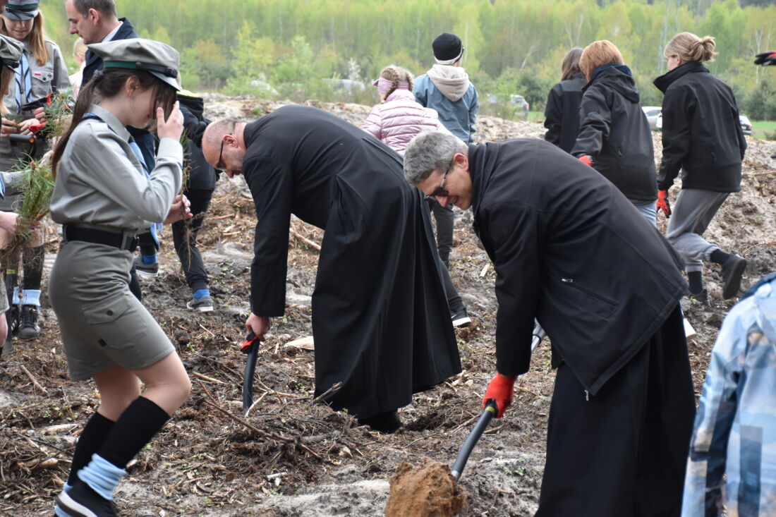 – Naszą misją jest codzienne dbanie o stan lasów – drzewostanu i zwierzyny. Zniszczony teren odnawialiśmy przez prawie dwa lata i dzisiaj Państwa pomoc pomoże przywrócić las środowisku. Wydarzenie łączymy z uczczeniem pamięci wielkiego Polaka św. Jana Pawła II, który kochał przyrodę i odnosił się do niej z niezwykłą wrażliwością. Umiłowanie przyrody wyniósł z domu rodzinnego, dlatego tak ważne jest wychowanie w duchu miłości i szacunku do natury – powiedział gospodarz, nadleśniczy Nadleśnictwa Koniecpol Przemysław Grabowski. Jednocześnie, w sposób szczególny, podziękował leśniczemu Robertowi Ciesielskiemu i podleśniczemu Marcinowi Barczykowi, którzy najbardziej przyczynili się do uporządkowania powierzchni pod sadzenie drzew.