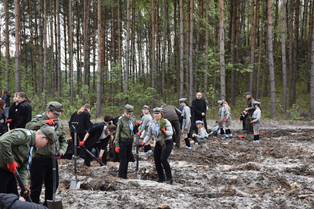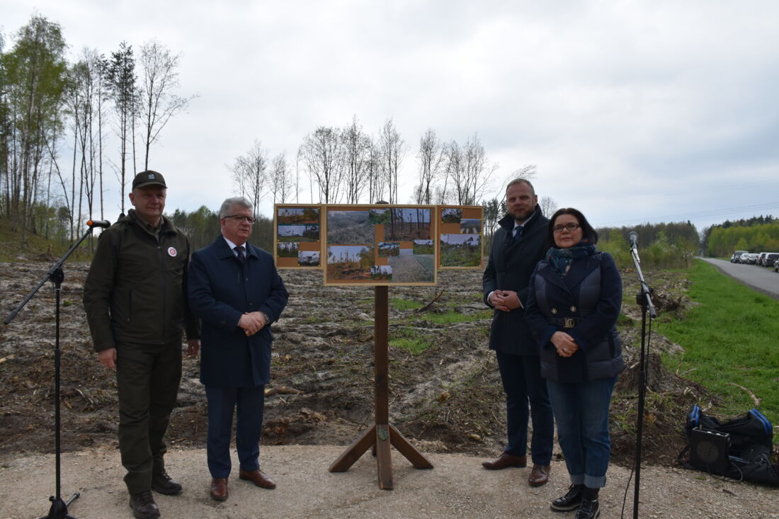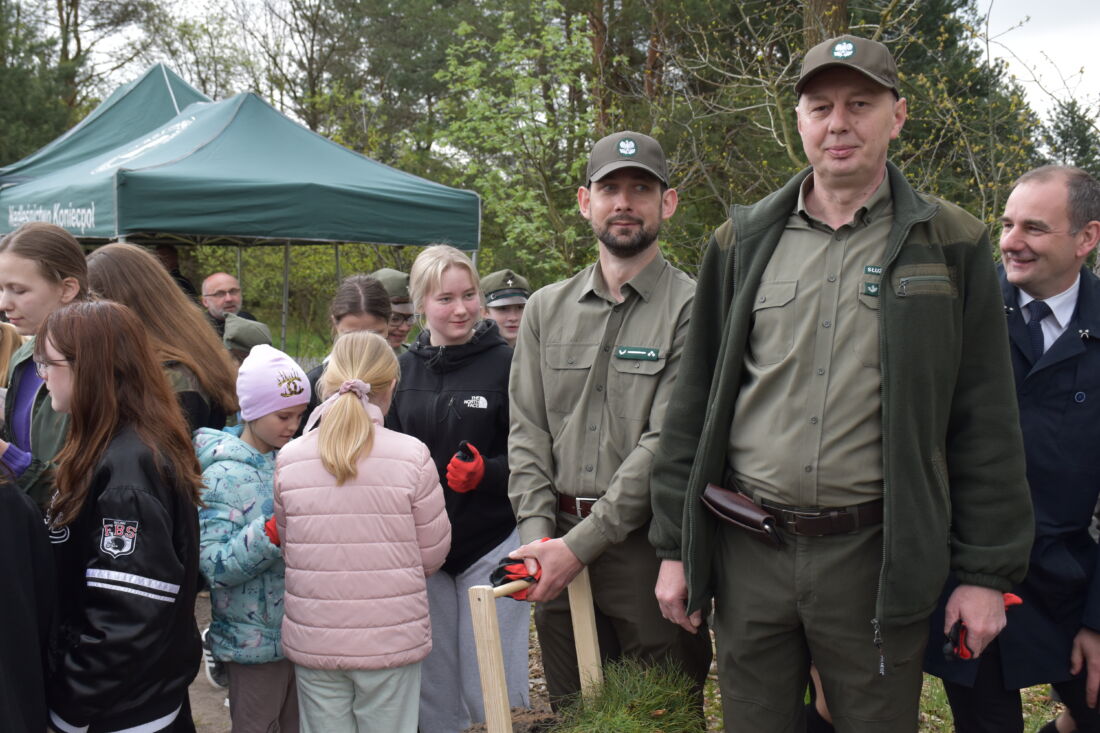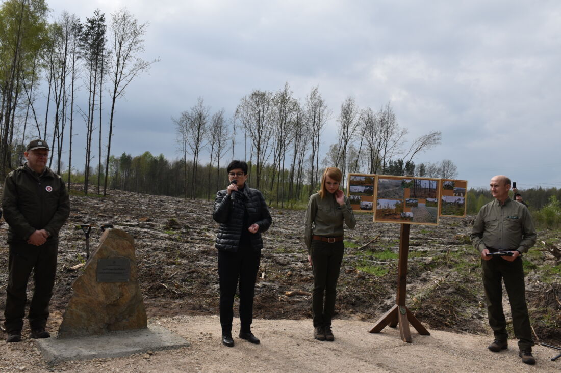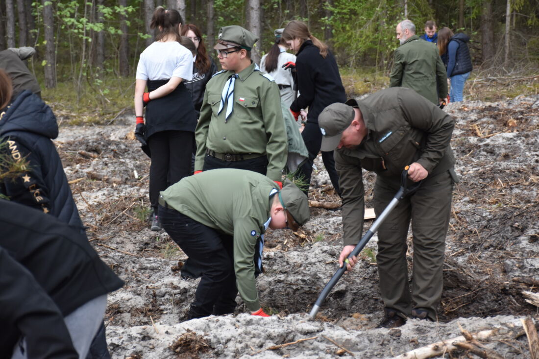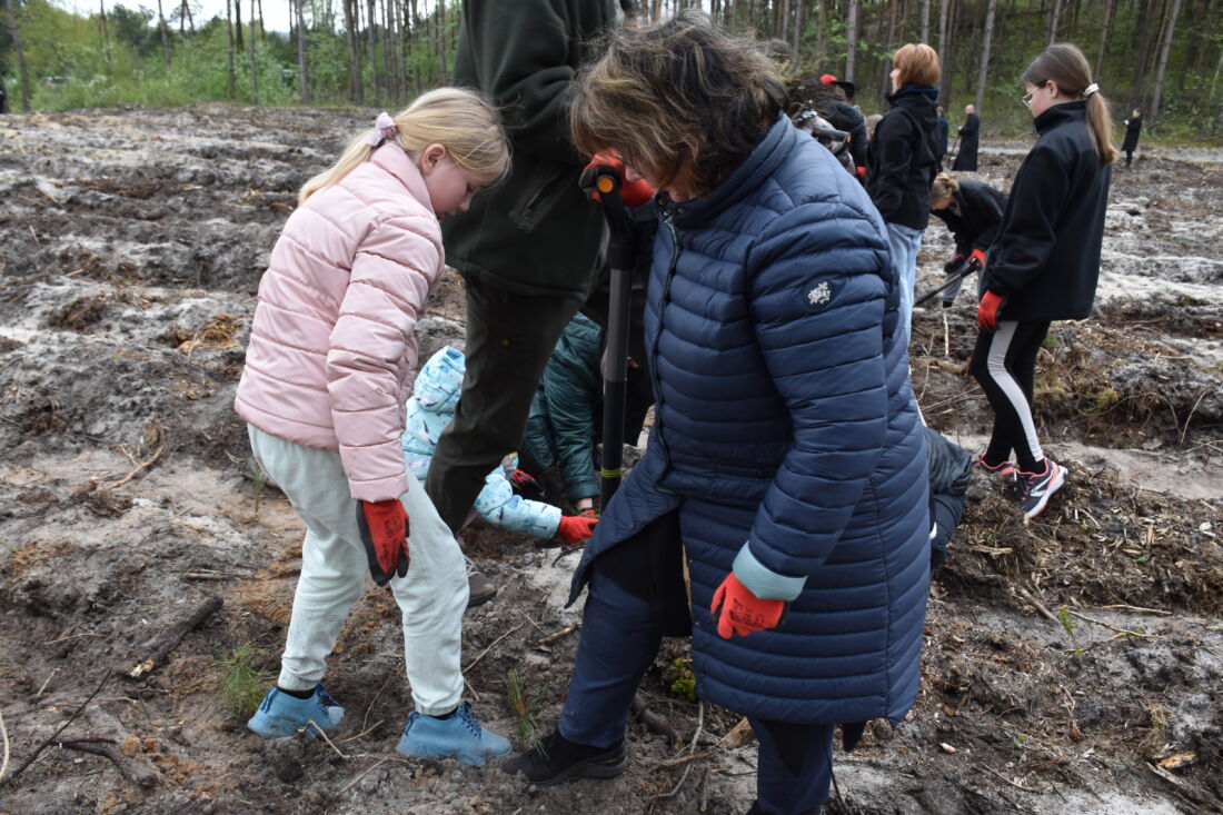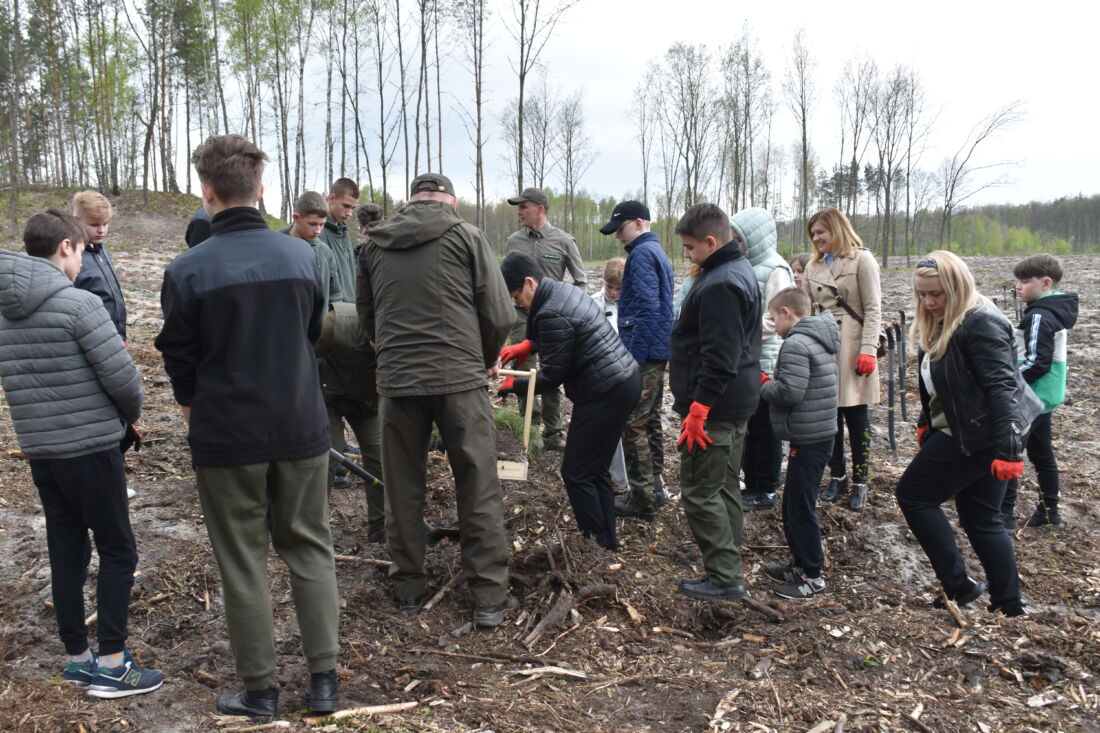 – Naszą misją jest codzienne dbanie o stan lasów – drzewostanu i zwierzyny. Zniszczony teren odnawialiśmy przez prawie dwa lata i dzisiaj Państwa pomoc pomoże przywrócić las środowisku. Wydarzenie łączymy z uczczeniem pamięci wielkiego Polaka św. Jana Pawła II, który kochał przyrodę i odnosił się do niej z niezwykłą wrażliwością. Umiłowanie przyrody wyniósł z domu rodzinnego, dlatego tak ważne jest wychowanie w duchu miłości i szacunku do natury – powiedział gospodarz, nadleśniczy Nadleśnictwa Koniecpol Przemysław Grabowski. Jednocześnie, w sposób szczególny, podziękował leśniczemu Robertowi Ciesielskiemu i podleśniczemu Marcinowi Barczykowi, którzy najbardziej przyczynili się do uporządkowania powierzchni pod sadzenie drzew.