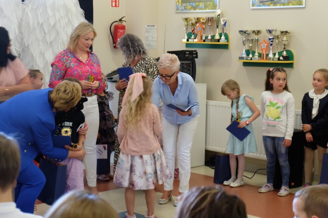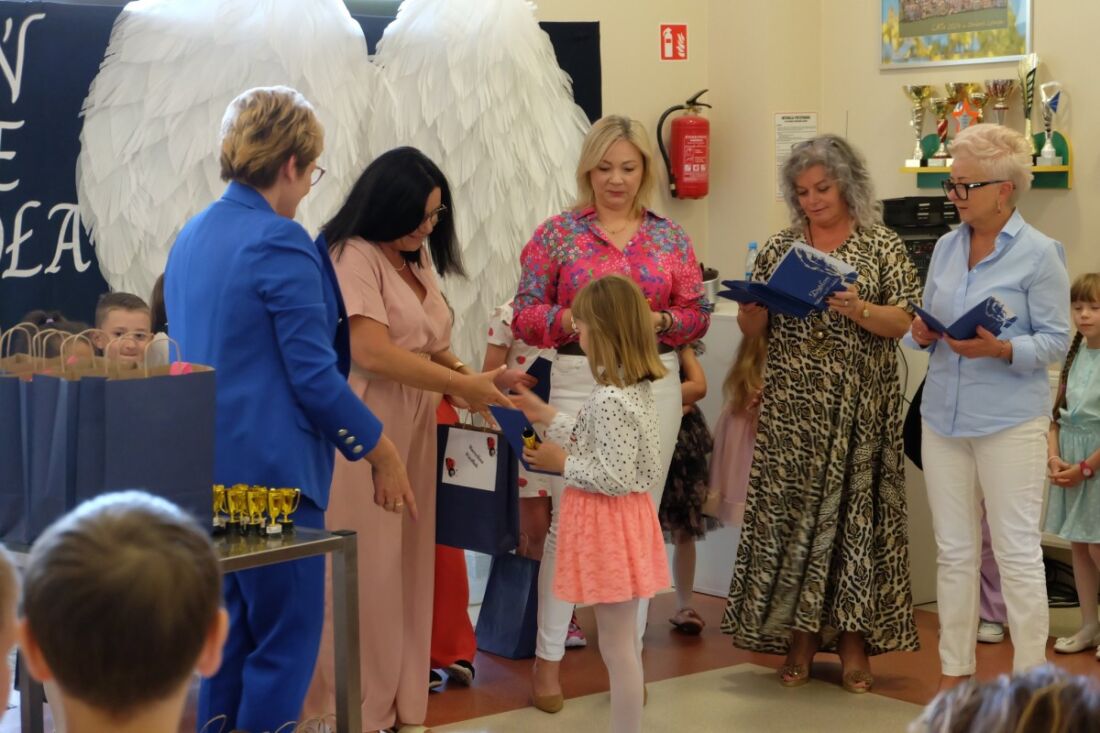 Podczas uroczystości dzieci otrzymały dyplomy i upominki, które wręczyły: Wójt Katarzyna Kaźmierczak, dyrektor Przedszkola Joanna Sawicka i wychowawczynie grup: Agata Rosikoń i Marta Wolska, w obecności kierownik ZEAS w Poraju Anny Karkochy, z-cy kierownika Referatu Organizacyjnego i Spraw Społecznych Andrzeja Kozłowskiego i Marty Janusiewicz, dyrektor Szkoły Podstawowej im. Pokoju w Żarkach- Letnisku.