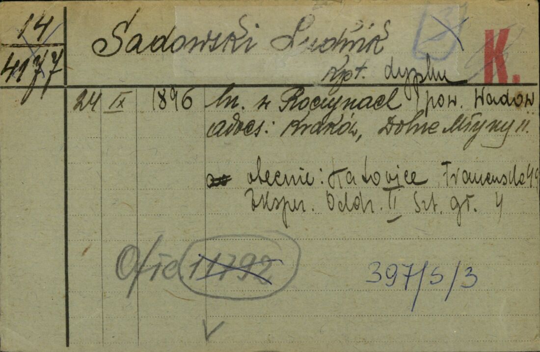 Ludwik Sadowski nie brał udziału w w/w wydarzeniach, ponieważ w tym czasie wraz z dwoma podoficerami został wysłany do Krakowa z pułkowym archiwum. Dotarł do celu, uprzednio zmyliwszy w Płaszowie (obecnie dzielnica Krakowa) chcących go aresztować żandarmów. Od kwietnia do sierpnia 1918 służył w 2 Pułku Piechoty Polskiej Królestwa Polskiego. Zwolniony, jako cywil zaangażował się w działalność Polskiej Organizacji Wojskowej w Złoczowie (na wsch. od Lwowa). Internowany przez Ukraińców uciekł im, a następnie wstąpił do formującego się Wojska Polskiego, z którym swe losy związał na szereg lat swego życia.