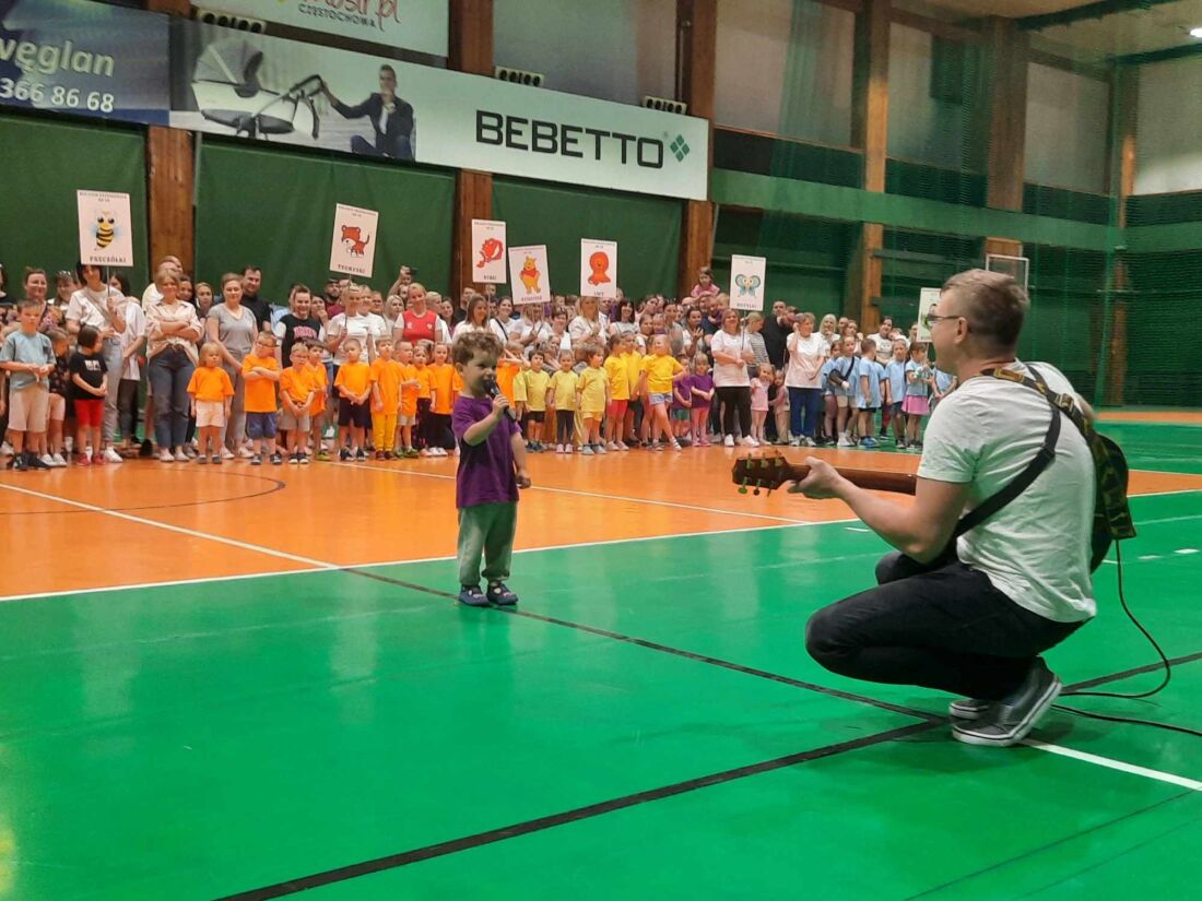 Imprezę otworzyła dyrektor placówki Maria Fiszer i zaprosiła najmłodszego z przedszkolaków, Olka, który przy akompaniamencie swojego taty wykonał utwór pt. „Piosenka do zabawy”.
