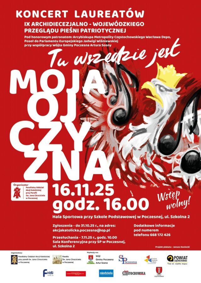 W tym roku sięgamy po dzieła Jana Kochanowskiego – zapraszamy do miejscowości Mazury, 5 września w piątek! Gmina Poczesna od lat przystępuje do ogólnopolskiej Akcji – „Narodowe Czytanie”. Odbywa się ona pod Honorowym Patronatem Prezydenta RP i Jego Małżonki. Pierwsze czytanie odbyło się w 2012 roku. Pierwsza lekturą był „Pan Tadeusz” Adama Mickiewicza.