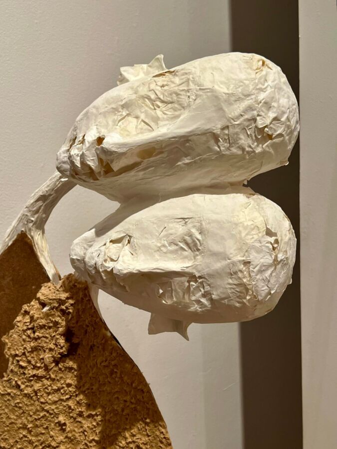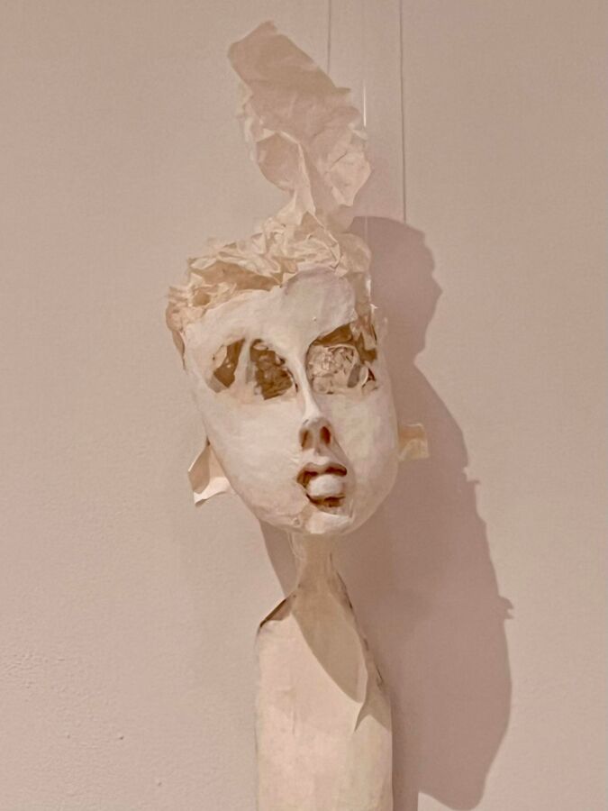 O predylekcji artystki w kwestii jej twórczego tworzywa świadczy choćby fakt, iż jest ona członkinią Międzynarodowego Stowarzyszenia Artystów Tworzących Papier i w Papierze (International Association of Hand Papermakers and Paper Artists). Jej papierowe dzieła opowiadają wciąż tę samą historię o człowieku. O jego małych czy pozornie małych sprawach, które mu się nieustannie przydarzają. O drobiazgach, które – choć bez materialnej wartości – bywają bezcennymi skarbami. I o przeszłych zdarzeniach, odtwarzanych z każdym przywołaniem. Obok prac figuratywnych – o charakterystycznej ,,lalkowości’’ – wystawę tworzą prace płaskie, obiekty, instalacje z elementami odwołującymi się do pewnych antropomorficznych atrybutów, sytuacji jednostkowych i społecznych, niejednokrotnie zaskakujących…