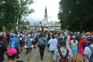 Dziś 11 sierpnia do sanktuarium dotrze jedna z najdłuższych – 33. Ełcka Pielgrzymka Piesza. Wejście grupy zaplanowano około godz. 10.30. Są pełni wiary, nadziei i modlitewnych intencji – pątnicy z diec. bielsko-żywieckiej wyruszyli z pięciu miejscowości, aby dziś przybyć do Królowej Polski. Ok. 1800 pielgrzymów pieszych i rowerowych podejmuje trud „z nadzieją i po nadzieję” w Roku Jubileuszowym, upamiętniającym 2025 lat od narodzin Chrystusa. Pątnicy 45. Pieszej Pielgrzymki Krakowskiej wędrują w intencji Ojczyzny i Ojca Świętego, ich wejście zaplanowano ok. godz. 15.30. To jedna z największych pieszych kompani.