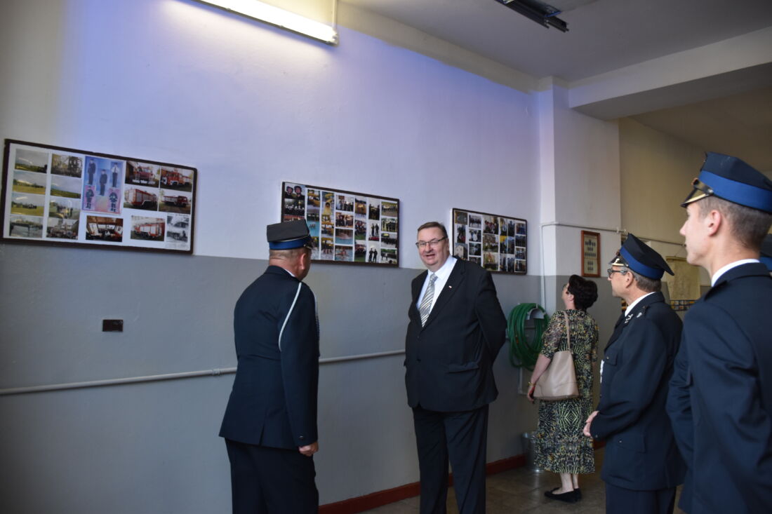 Wiceminister Szymon Giżyński dziękując druhom za pamięć pogratulował obu jednostkom dobrych, wzajemnych relacji. Wyraził też wdzięczność za wyjątkową, oddaną na rzecz drugiego człowieka służbę. – Przytoczę historię, która do dzisiaj jest dla mnie niezwykłym wspomnieniem i przykładem Państwa zaangażowania i sprawności. Gdy podczas otwarcia oczyszczalni w Przyrowie w pobliskim zakładzie wybuchł pożar, zanim jeszcze zawyły syreny usłyszeliśmy pisk opon pędzącego samochodu Pana Prezesa Jacka Stencla. Potem dowiedziałem się, że wraz ze swoją drużyną gasił pożar przez całą dobę, nie zważając na zmęczenie. Szanowni Panowie, wielkie podziękowanie za Waszą służbę – powiedział Wiceminister Szymon Giżyński.